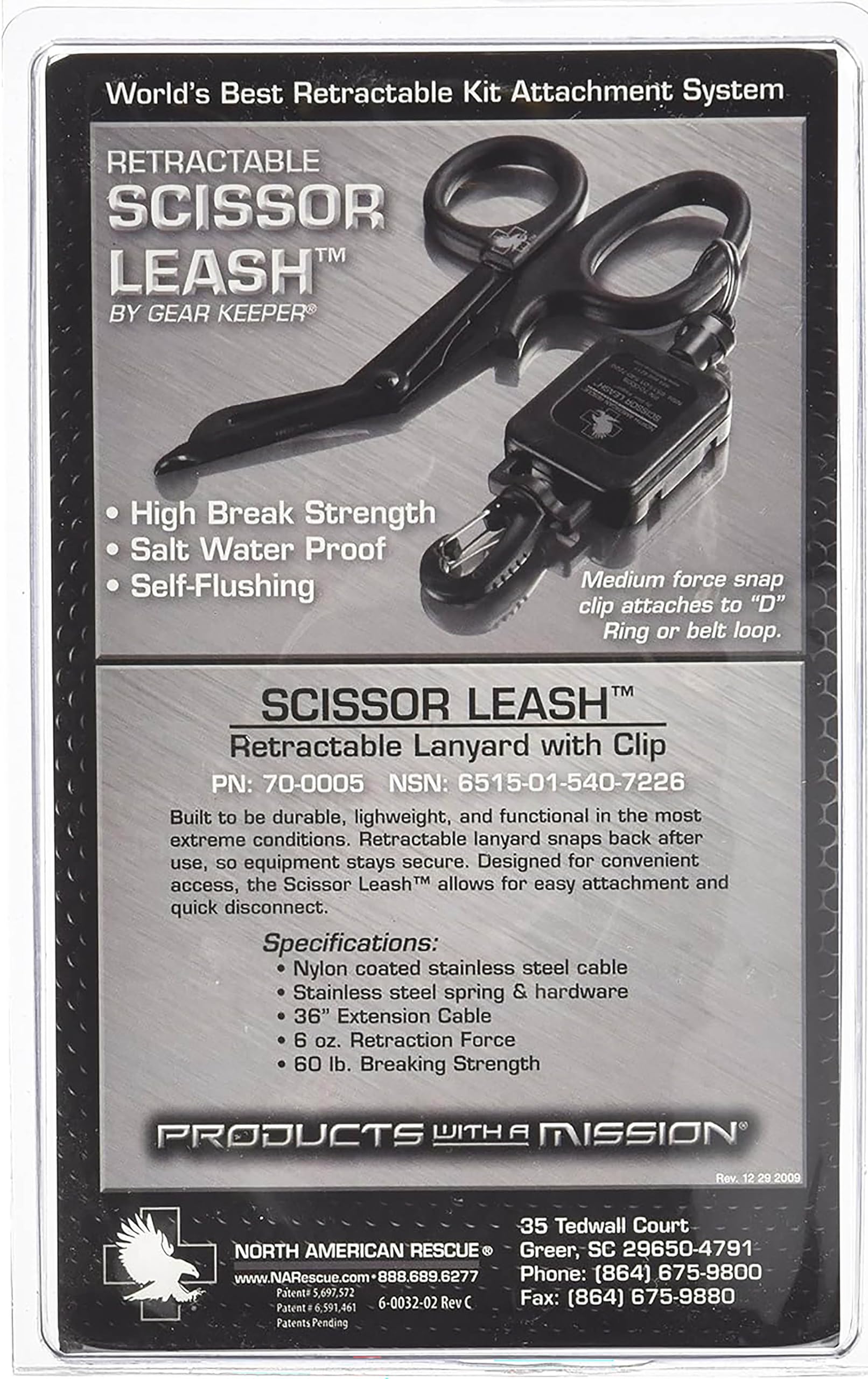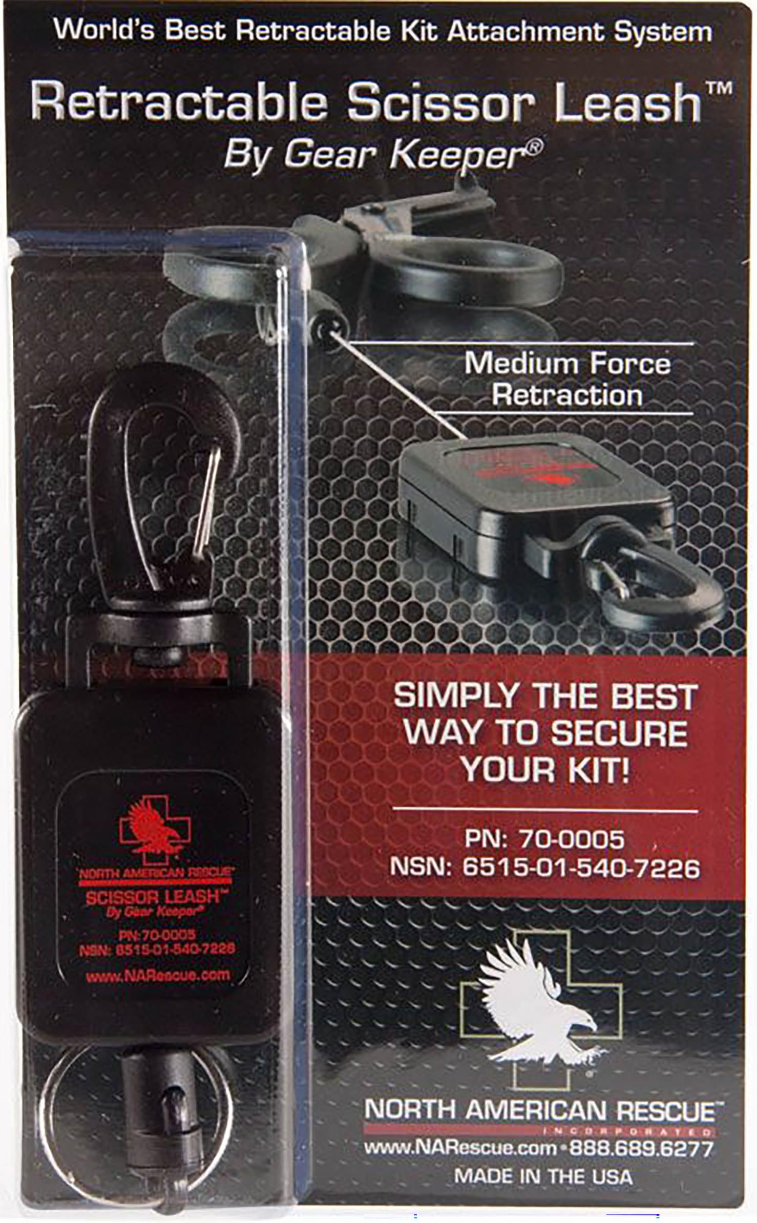 The NAR Scissor Leash (with clip) is the ultimate solution for maintaining positive control of your trauma shears in a tactical environment. The Scissor Leash is lightweight and highly reliable. The retractable lanyard snaps back immediately after use allowing the operator to knowwhere his scissors are at all times.