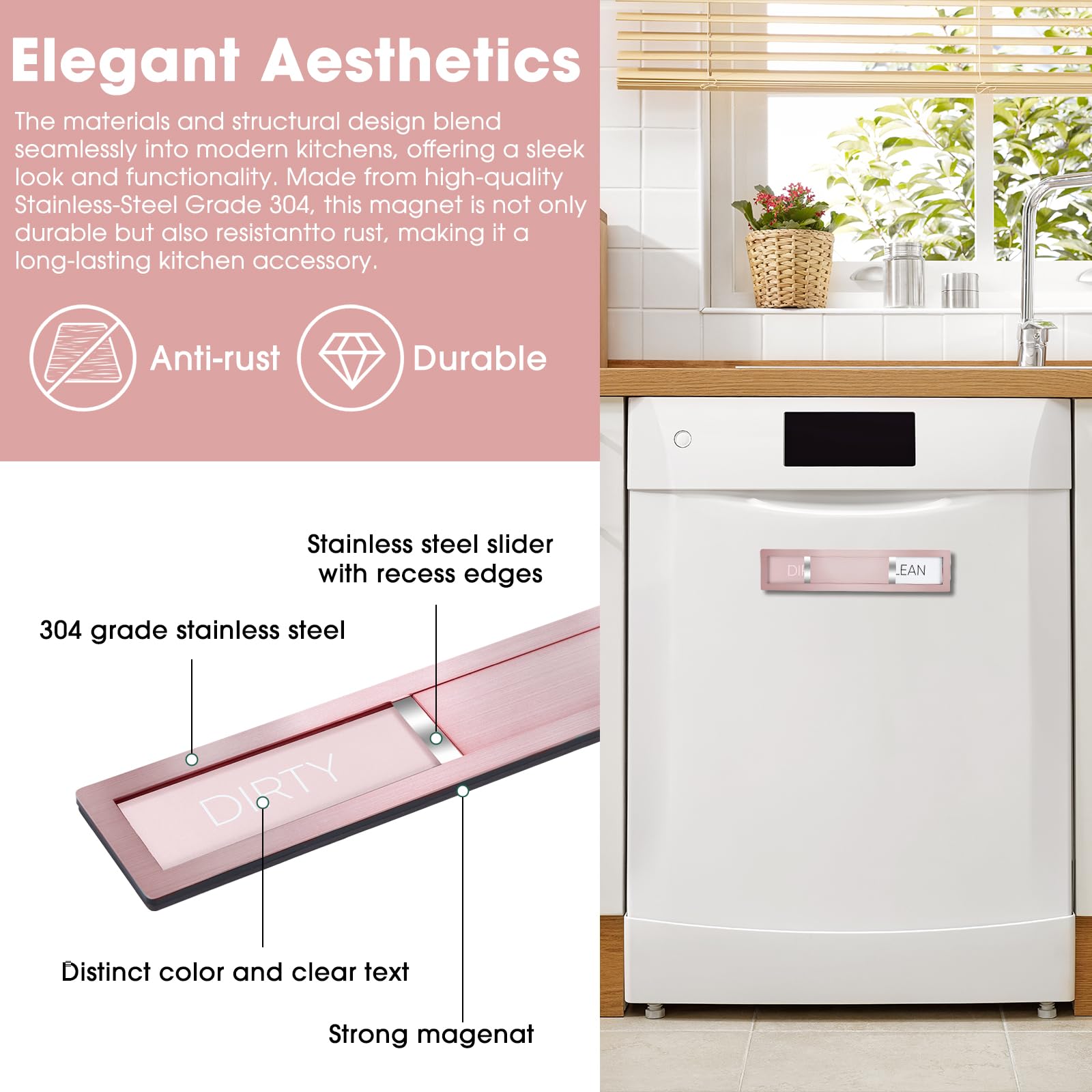 "Intentionally Subtle Luxury" Design Philosophy: Say goodbye to harsh fluorescent letters! We believe in "less is more"—the low-saturation rose gold matte font on the DIRTY side is a deliberate "breathing room" in design. While toning down the text, it highlights the 304 stainless steel brushed texture and buttery-smooth sliding mechanism, making functionality & aesthetics coexist seamlessly. This isn’t "poor visibility"—it’s a curated design choice for those who crave understated elegance.