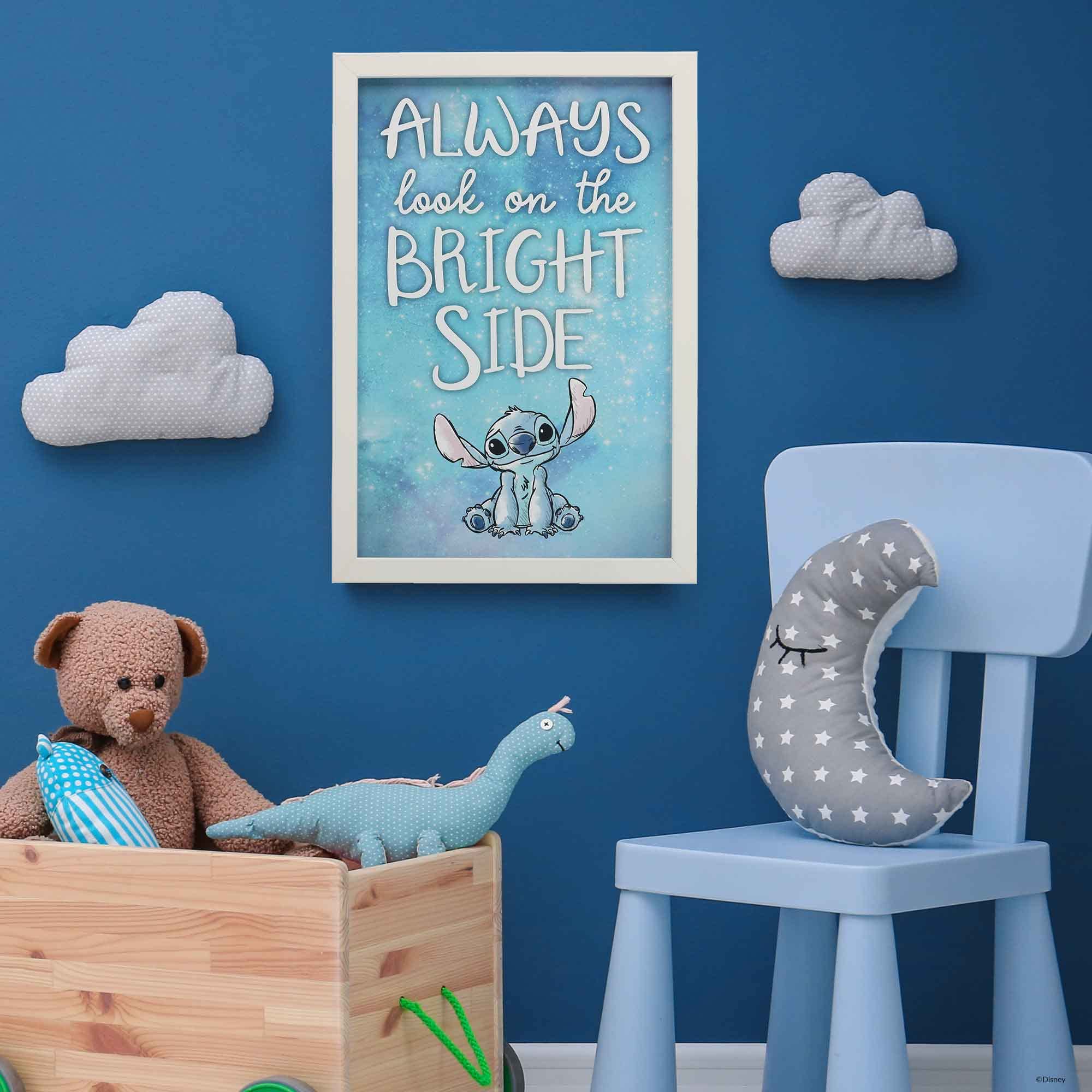 Framed Wood Wall Decor: This inspiring sign reads, "Always Look On the Bright Side." Complete with a grinning, endearing Stitch, this wall decor is sure to encourage your little one to look for the good in every situation.