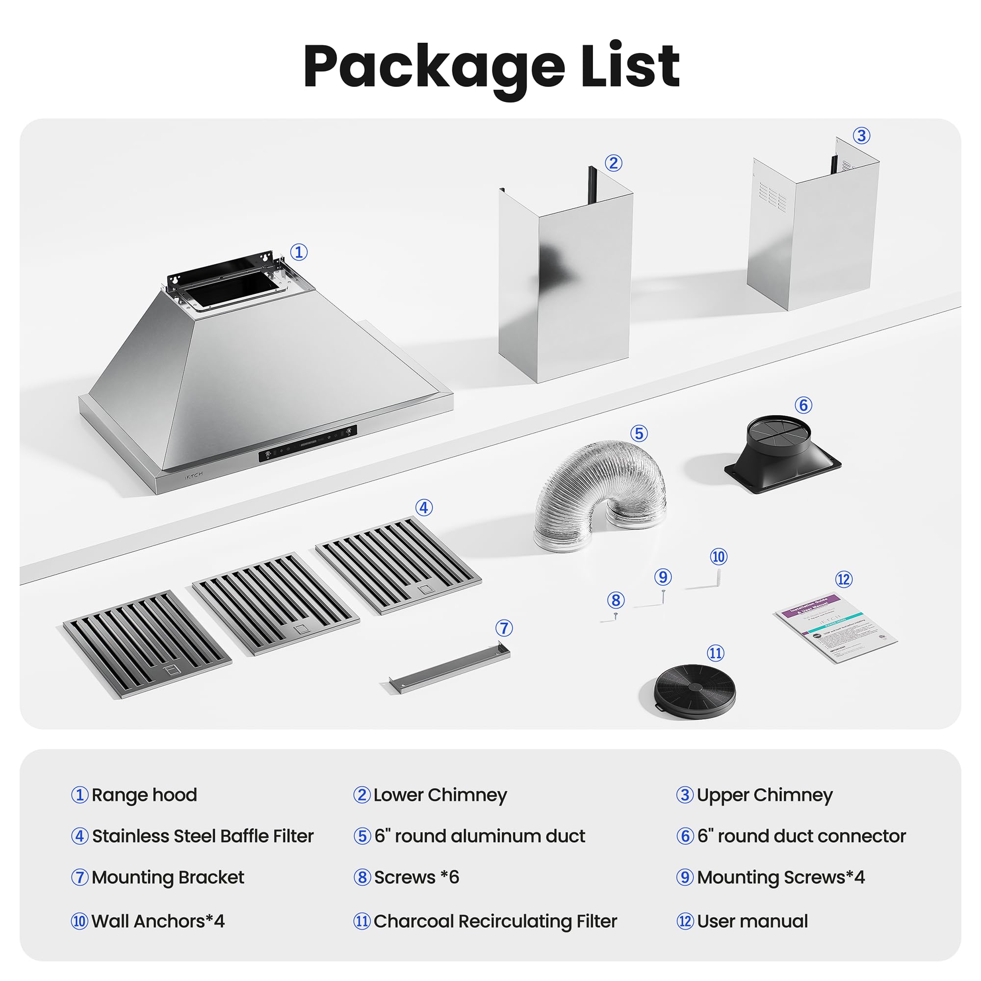 【Modern Design】: IKTCH Wall Mount Range Hood is made from stainless steel, which has an elegant appearance and comes with remote control. The novel gesture sensing function gives you a whole new experience.