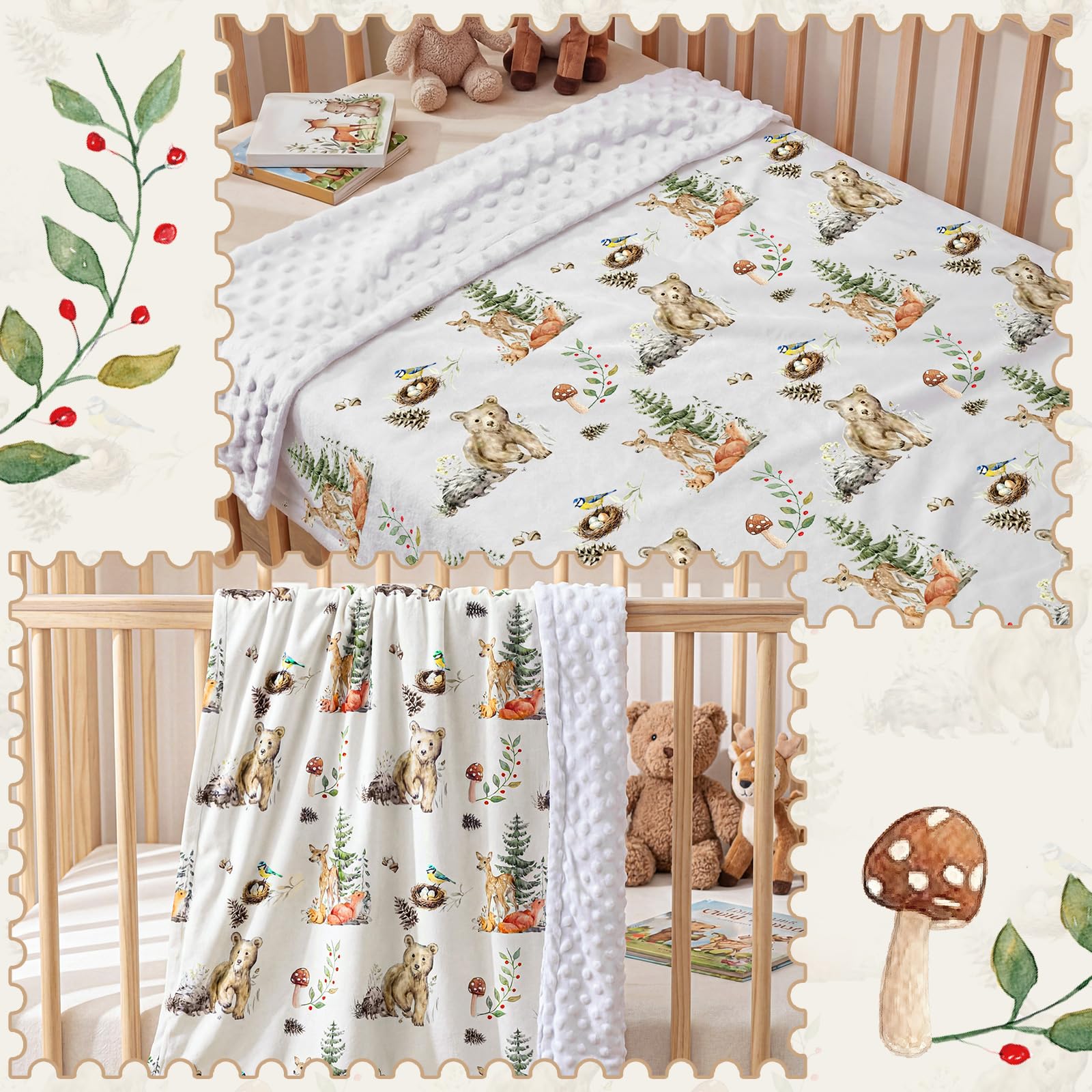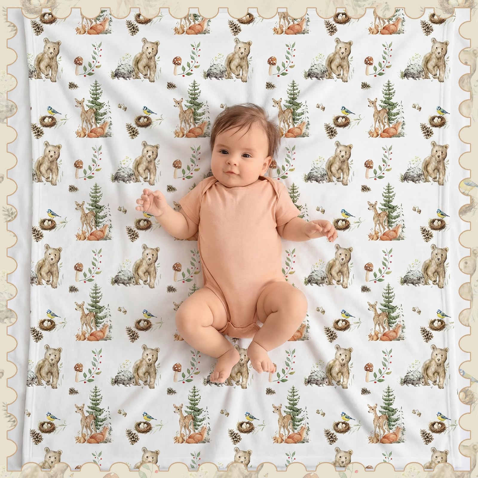Size and Versatility: woodland themed baby blanket measures 30 inches x 40 inches and is suitable for use as a crib blanket, swaddle, toddler blanket, travel blanket, car seat blanket, stroller cover, nap blanket, and pet blanket; It's also portable and easy to carry