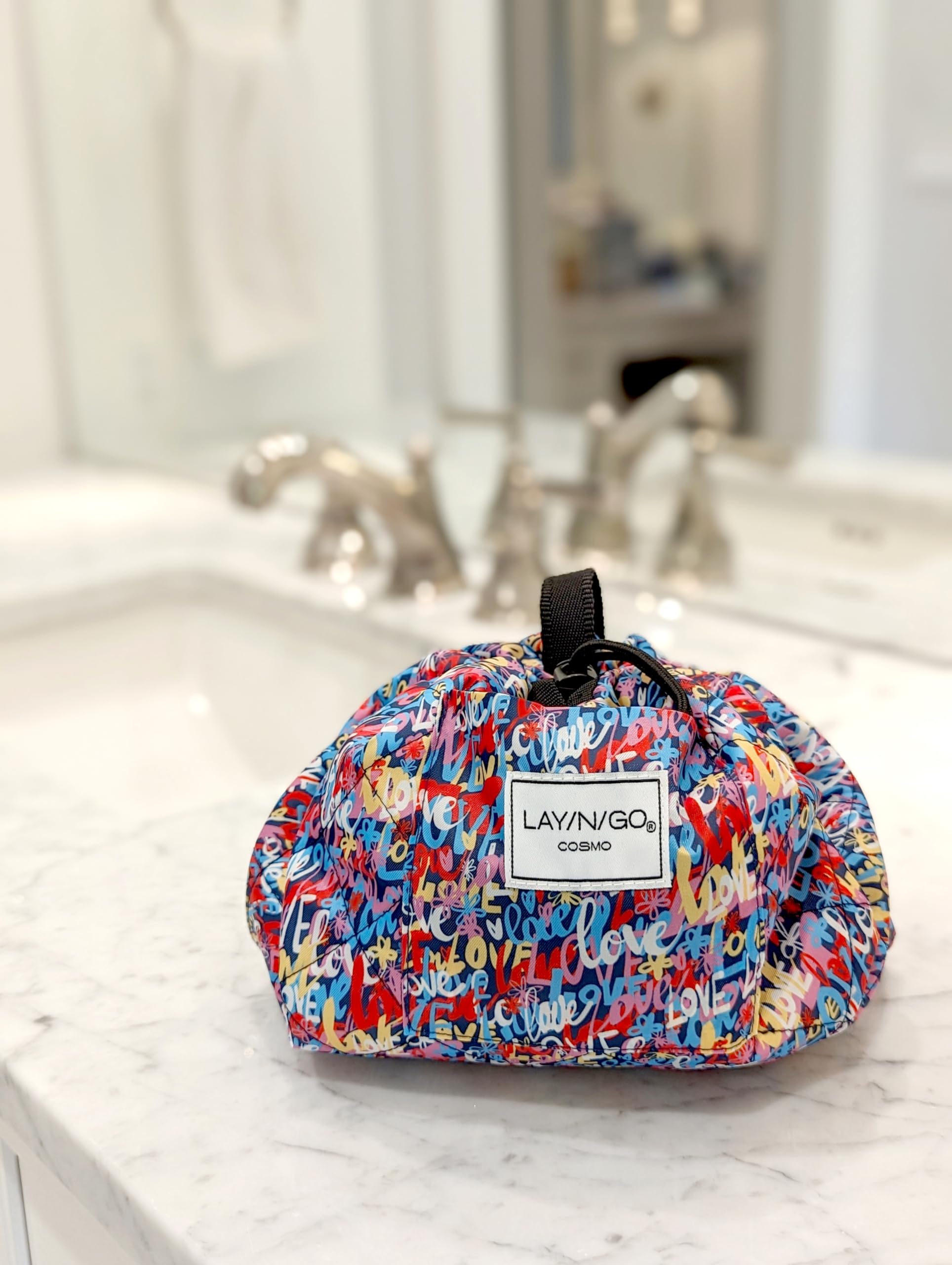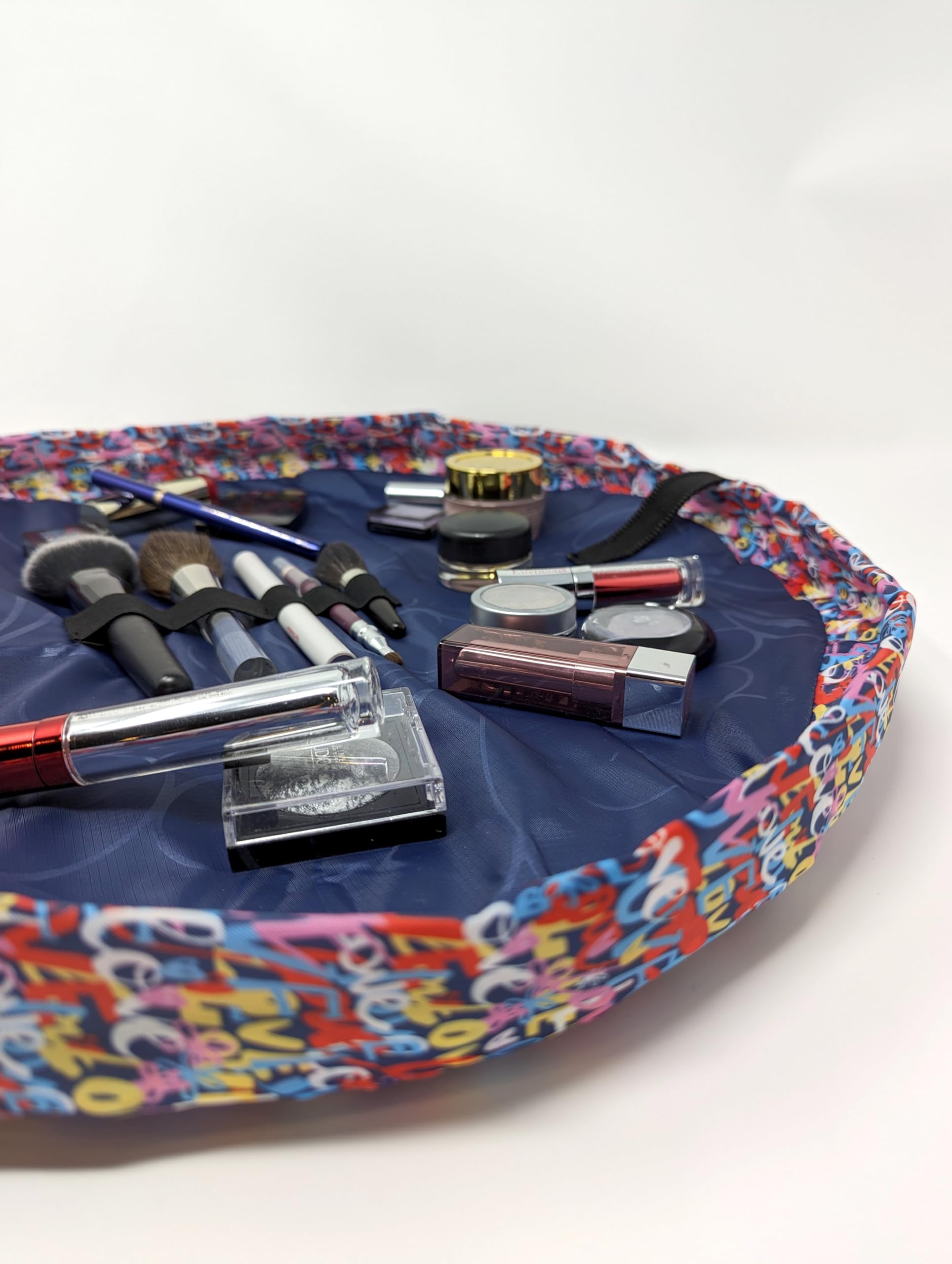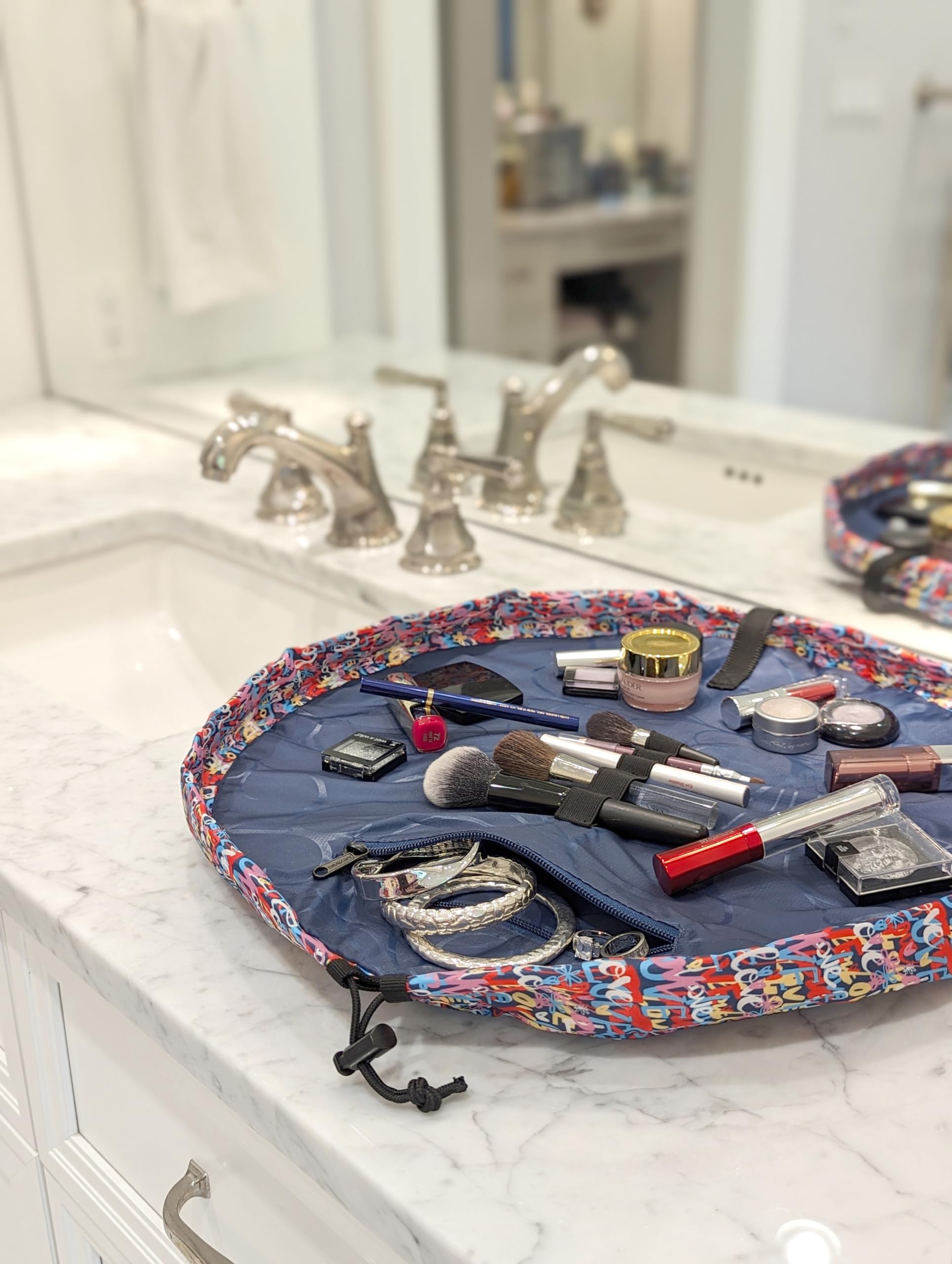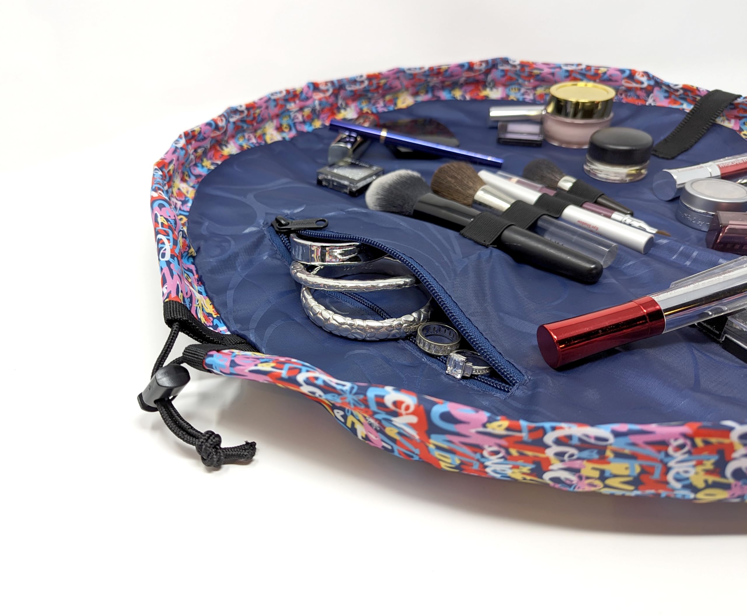 FAST CLEANUP, NO MESS: Lay flat to instantly access all your makeup, then cinch closed for effortless cleanup – no more digging through cluttered bags or bathroom counters.