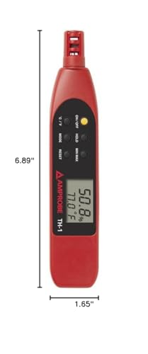Take this small portable relative humidity and temperature meter, the Amprobe TH-1 anywhere for those quick comfort-level measurements. Easy to read dual display with data hold to freeze measurement result on the screen. Precision capacitive RH sensor with twistable protective cap.