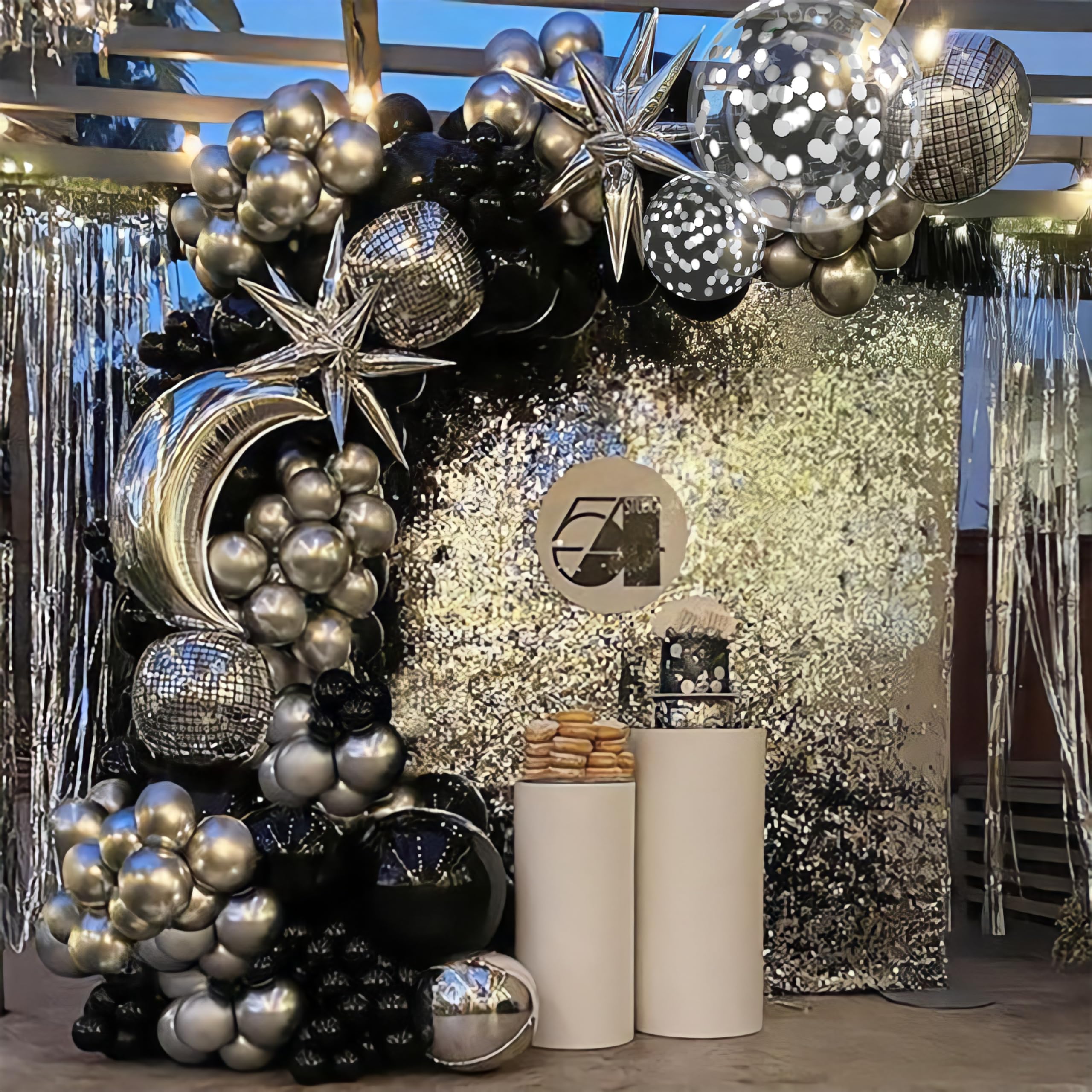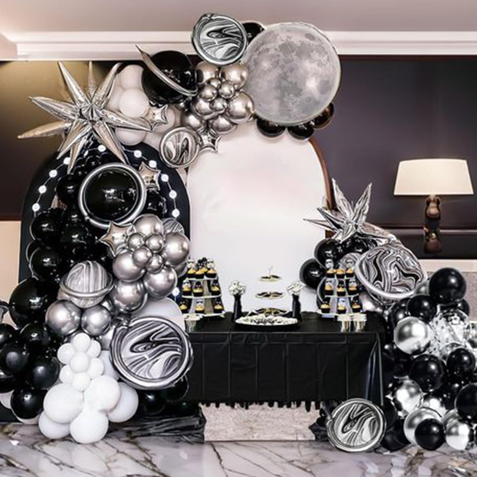 【Versatile Applications】: These metallic silver black balloons offer multi-functional applications, suitable for kids adults birthday party, wedding, graduation, black silver theme party decorations, baby shower, engagements, anniversary, bridal shower, and more. Our eye-catching balloons provide the good embellishment for every celebration.