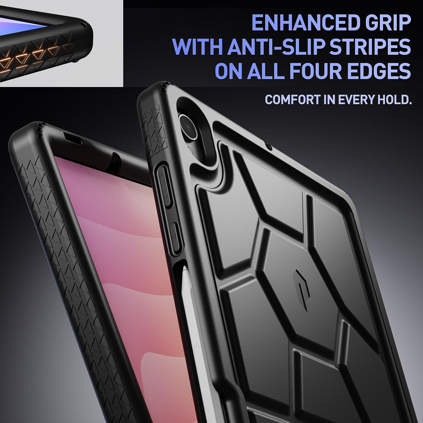 CHILDPROOF - Made with kid-friendly, non-toxic silicone. Includes tactile side grip and unique rear turtle shell design with raised supports for better grip and drop protection