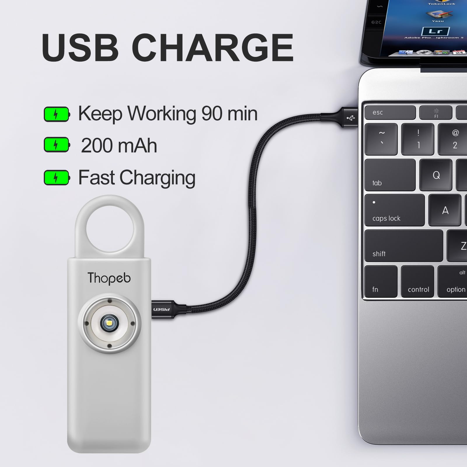 【Newrelease Rechargeable Design】- Personal Alarm is rechargeable. You can charge it for 45 minutes and not worry about replacing the battery. These personal alarms are individual tested and are built to last. The alarm siren continuously for up to 2 hours when activated.