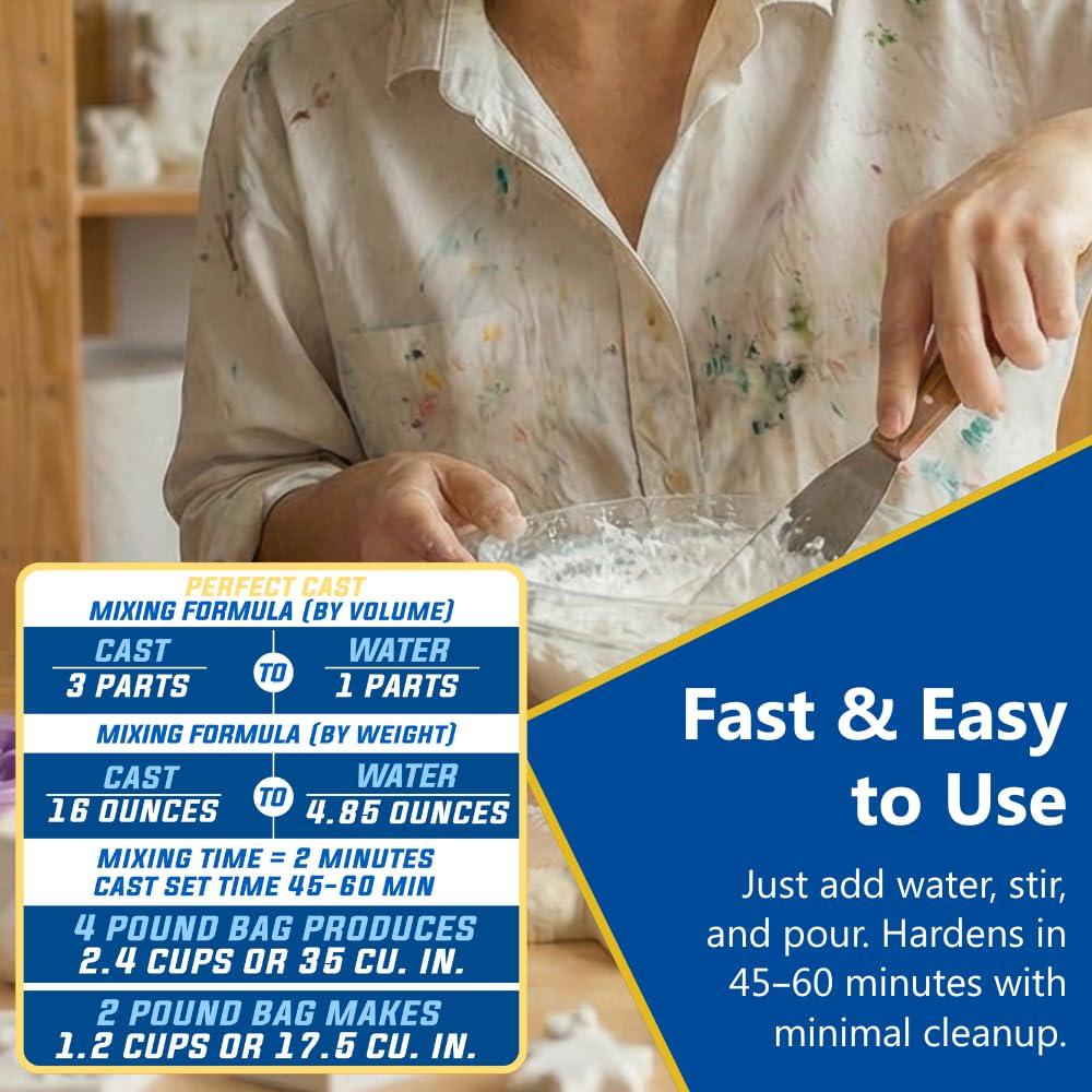 SIMPLE TO USE, CLEAN TO MIX: Just add water, stir thoroughly, and pour—no harsh chemical odors, long drying times, or the complicated steps of traditional resins or plasters; perfect for beginners and pros alike, instructions are clear and cleanup is fast, making the casting material ideal for classrooms, studios, and home craft spaces