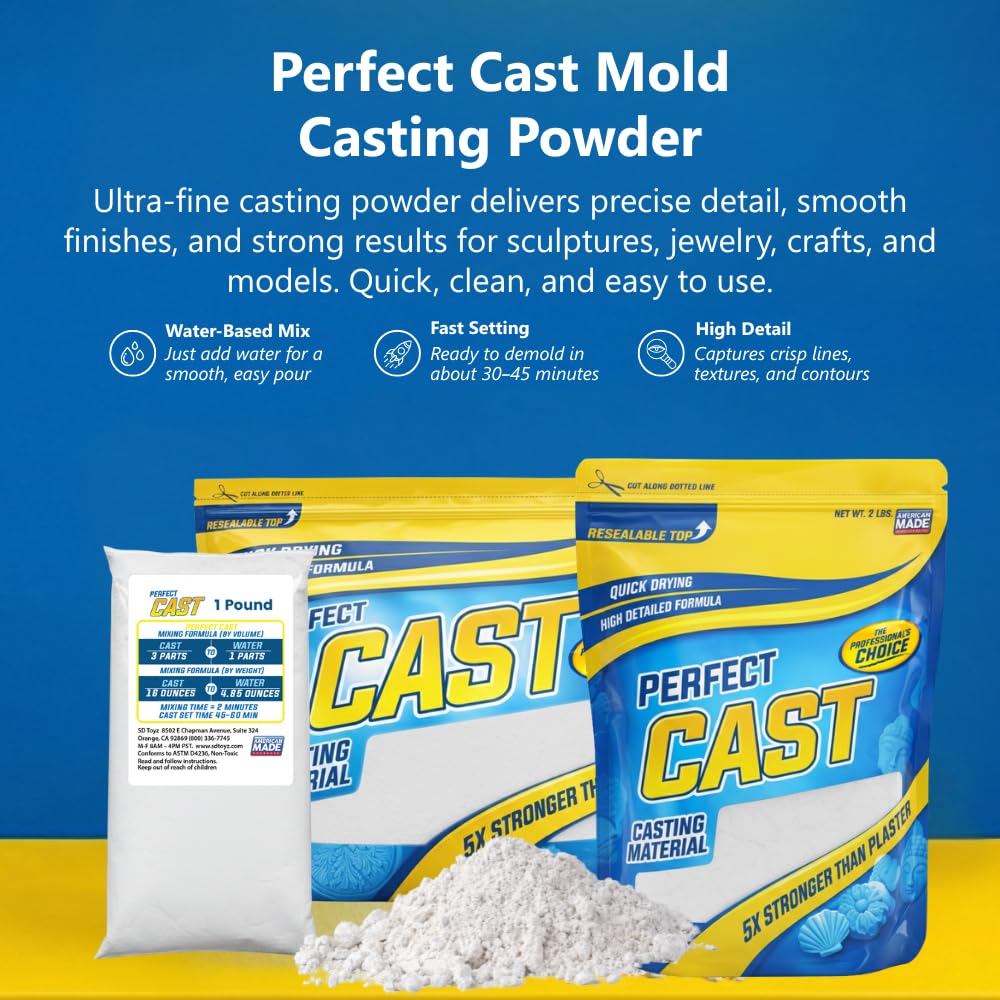PREMIUM DETAIL & DURABILITY IN EVERY POUR: This high-strength, non-toxic casting powder delivers ultra-fine detail and a smooth, bubble-free finish; developed for complex molds, Perfect Cast accurately captures crisp lines, textures, and contours with precision