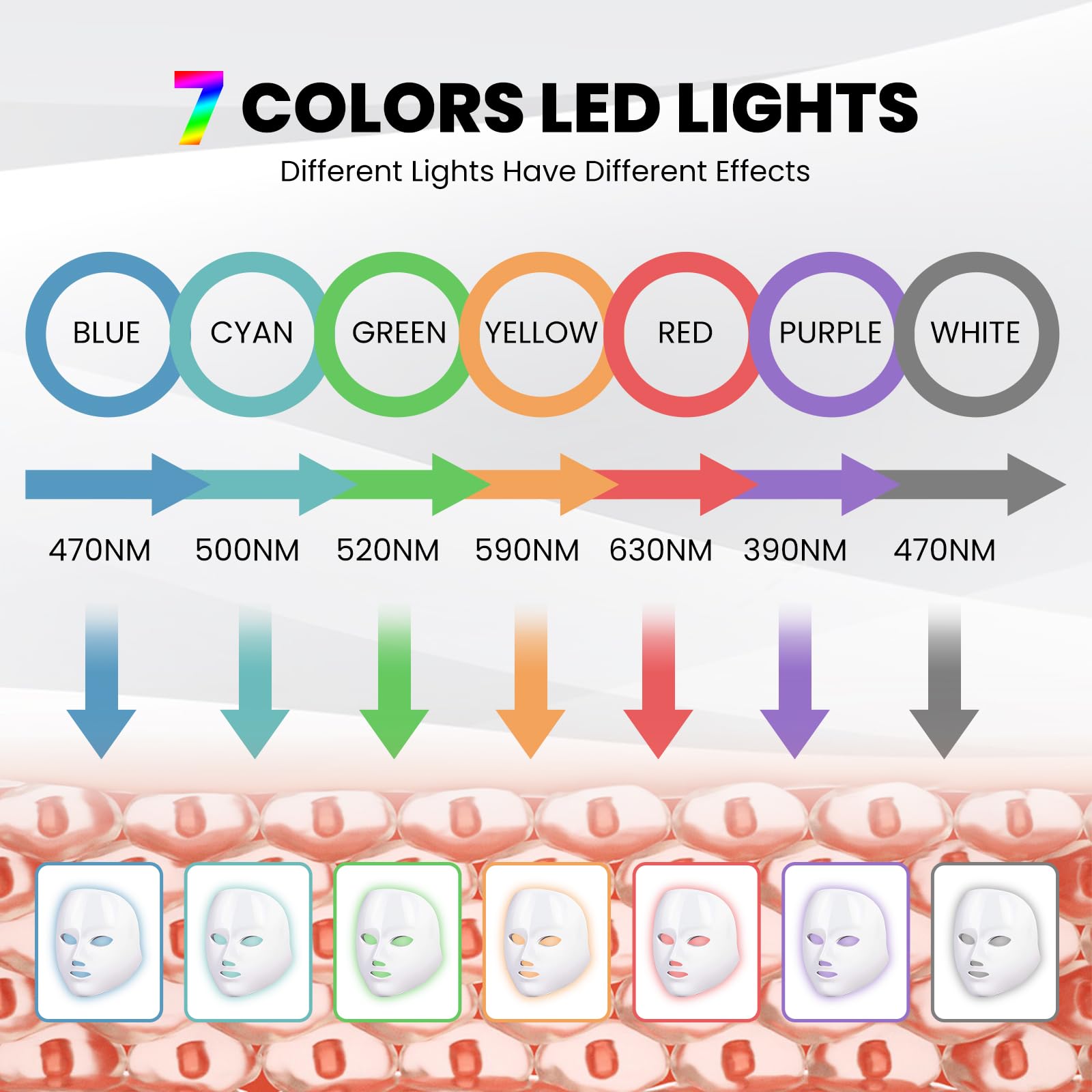 Versatile Color Options: The 7-1 Colors LED Facial Skin Care Mask boasts a range of LED colors, each meeting different needs. This versatility allows users to customize their routine according to their needs.