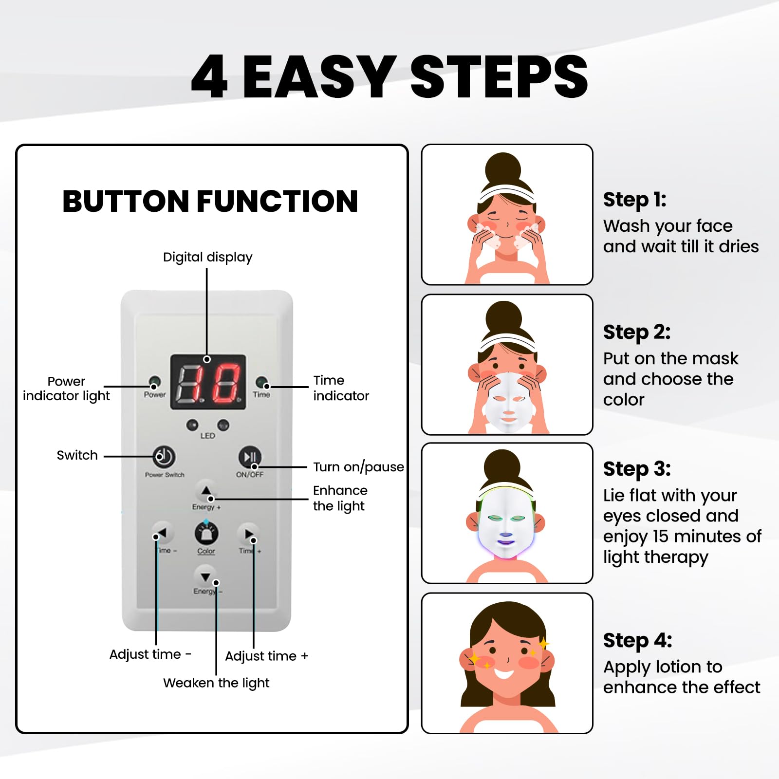 Safe and Non-Invasive: This is a non-invasive and safe skin care method. This mask provides gentle yet effective light exposure.