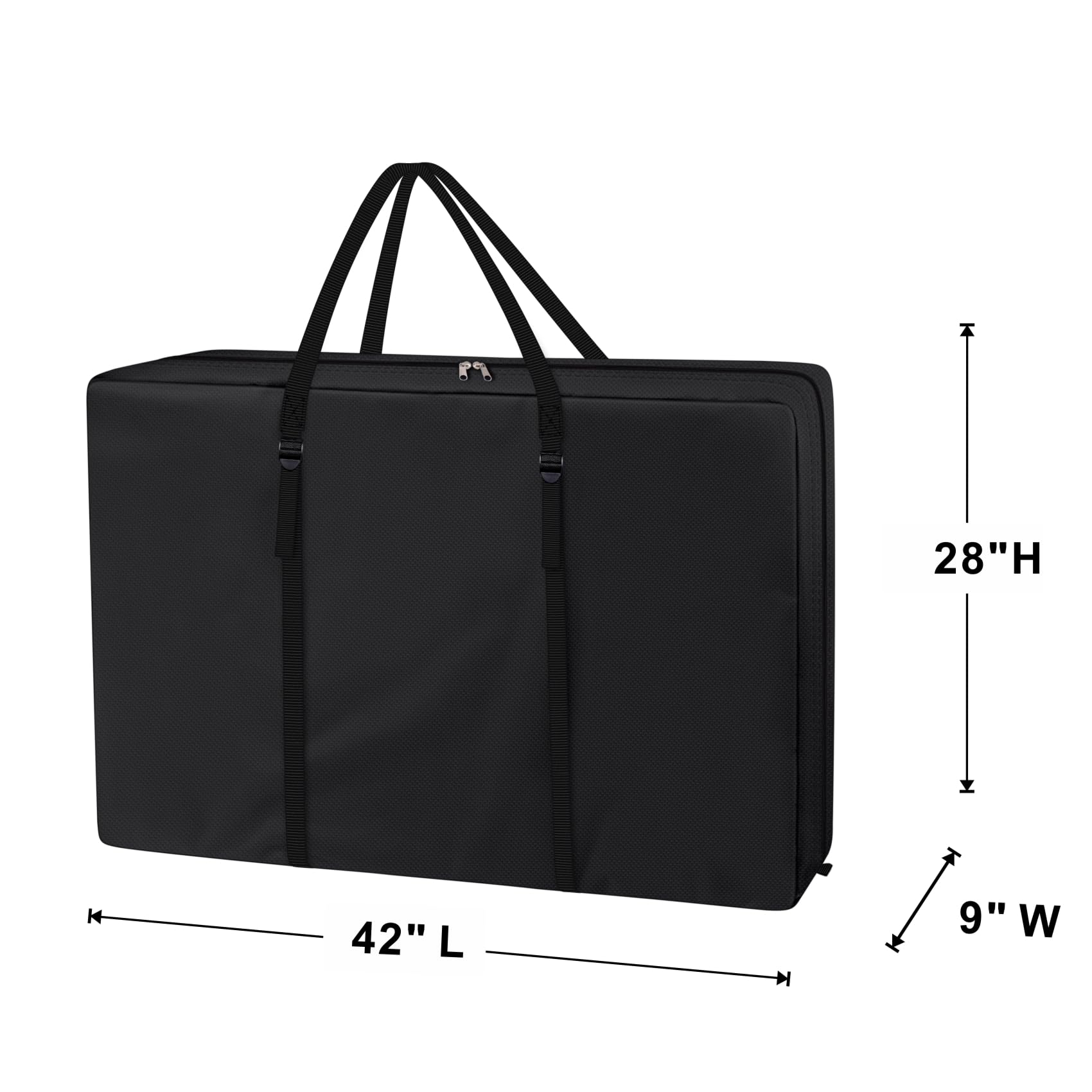 Dimension: 42 Lx 9 Wx 28 H inches. Ideal for storing folding lounge chair, zero gravity chair light weight transport chair, director chair, folding camping table and other folding recliners.