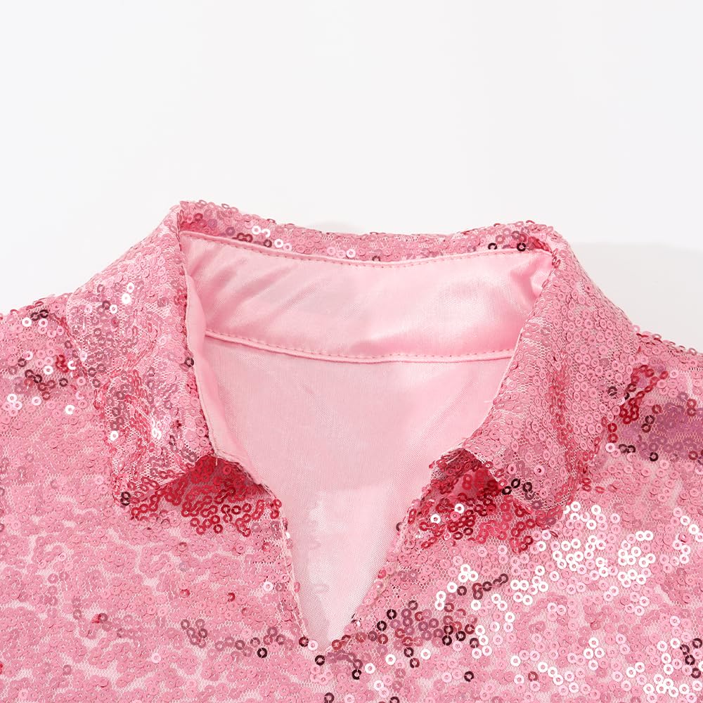 Sparkly sequin tops with V-neck, turn-down collar, fully sequined decoration makes shining and shimmering in the light or sunlight, inside soft satin lining to protect children's skin from scratches