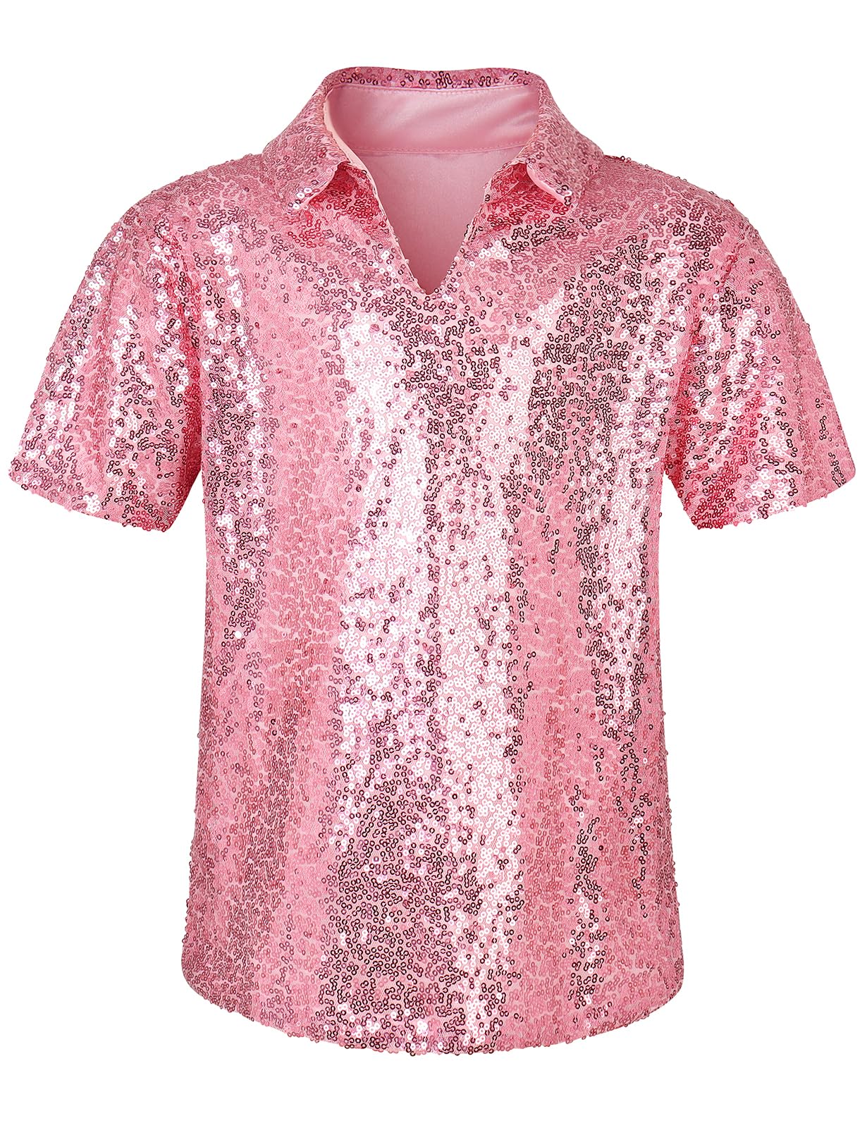 This kids shiny glitter shirt can match chino shorts, skinny pants, suit pants, slacks, jeans, etc., as you like, which creates a charming silhouette and adds to the overall dressy look
