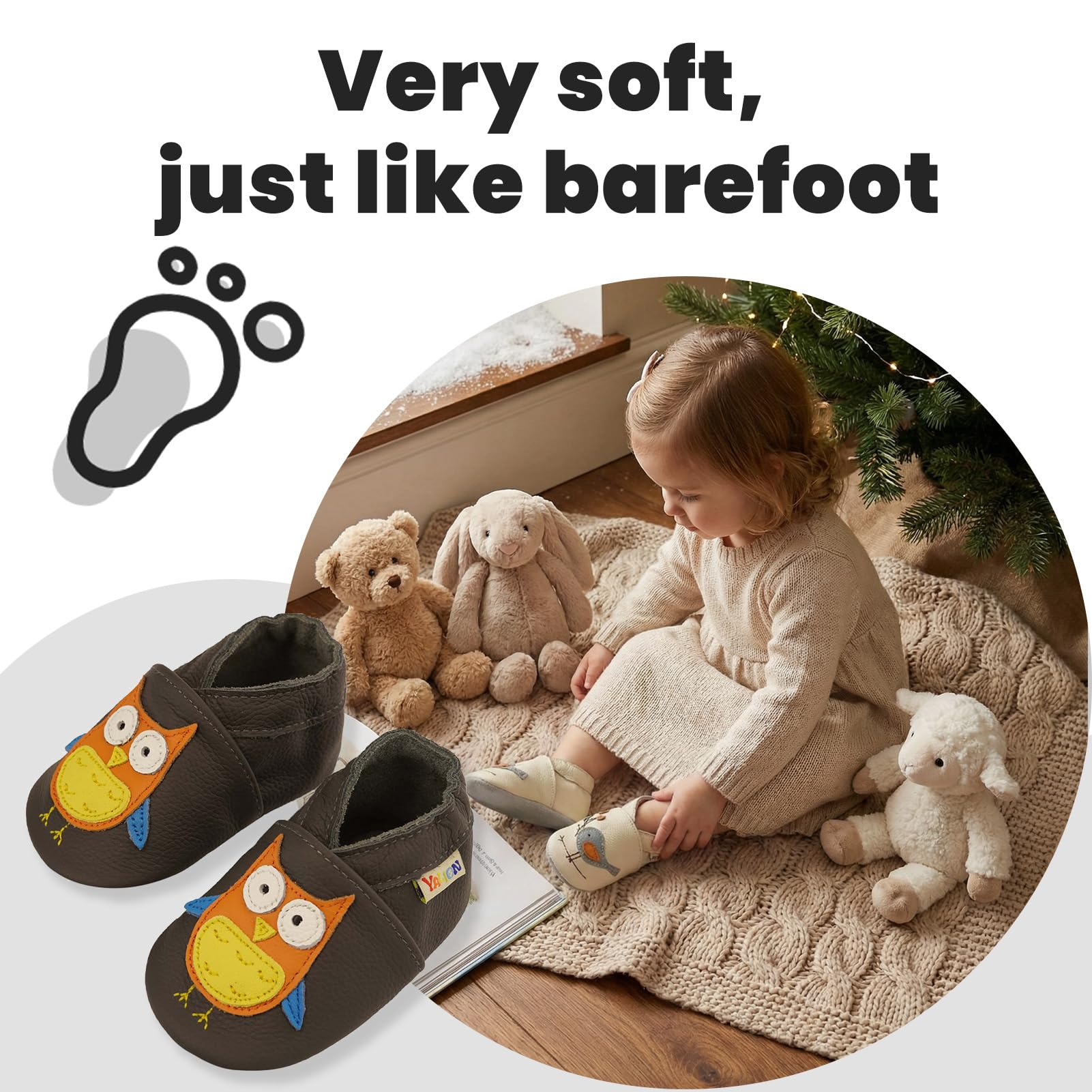 👣【Sofe suede sole】baby slipper are designed to protect little feet while crawling or walking, they allow feet to move, breathe and grow without being constricting.