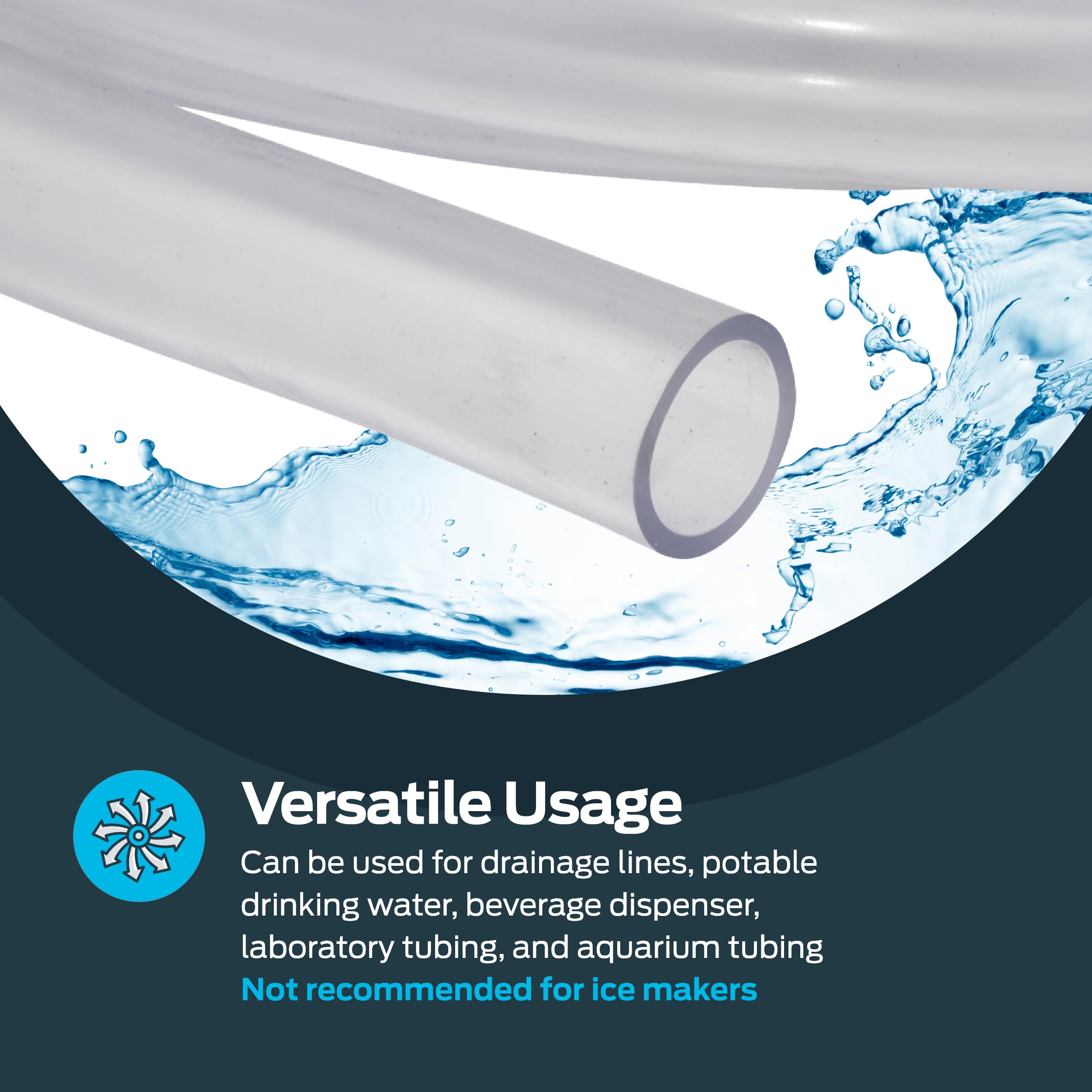 MULTI-PURPOSE USE: Great for drainage lines, potable water, beverage dispensers, aquarium tubing, and lab use; not recommended for ice maker supply