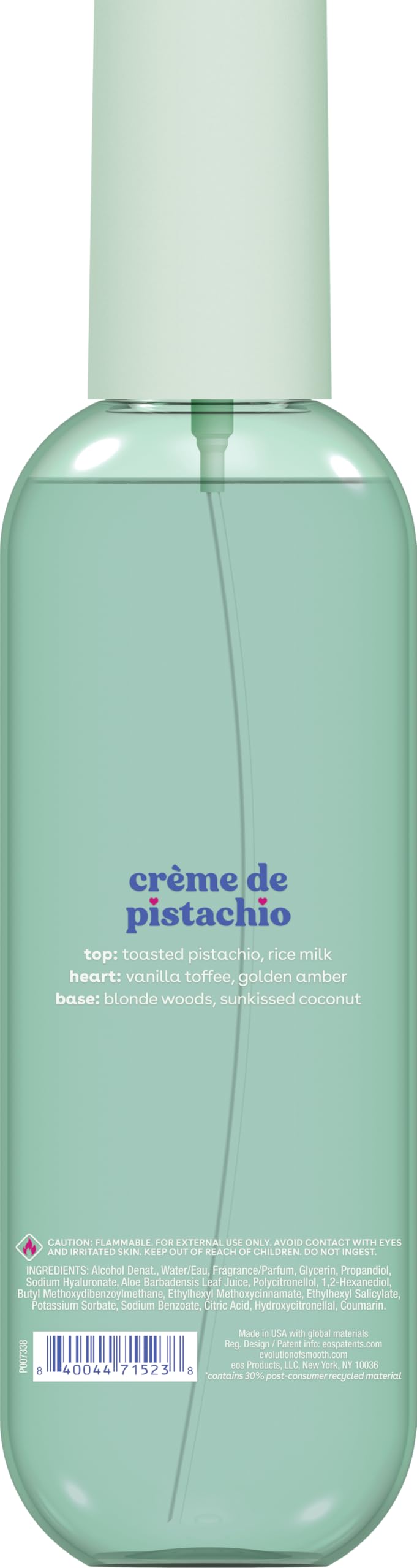 Wrap yourself in warm indulgence with Crème de Pistachio Body Mist, a fine fragrance body spray for women designed to be your go-to hair and body mist. Infused with skin-loving ingredients like hyaluronic acid, glycerin, and aloe vera, it hydrates, soothes, and softens while delivering a sweet, nutty scent. Toasted pistachio and rice milk open into vanilla toffee and golden amber, then settle into blonde woods and sunkissed coconut for a creamy, delicious finish. Spritz from head to toe and everywhere in between to start building your personalized fragrance routine.
