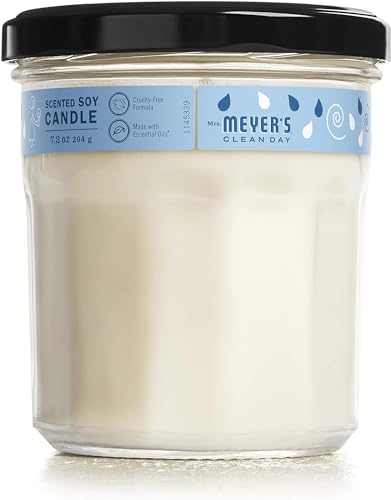 Sometimes it feels good just to have a nice candle giving off some extra fragrance while you're busy with your chores. A Mrs. Meyer's Clean Day Rain Water Candle can help you do exactly that. Let the crisp, clean and fresh scent of Rain Water scent fill your room. Rain Water has an floral touch hinting of white fowers. The cute recyclable glass candle jar makes it a great gift idea as well. All candles are made from vegetable, cottonseed and soy wax. The lead-free cotton candle wick has a 35-hour burn time and provides fresh fragrance while you clean or relax at home. Also available in other garden inspired scents and products such as body lotions, laundry detergents, bar soaps, and so much more! Mrs. Meyer's - rooted in goodness."