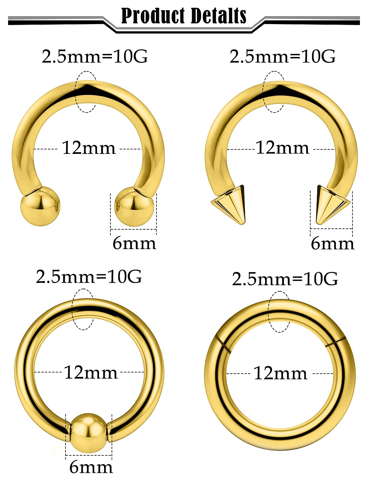 Horseshoes Captive Bead Rings Made of 316L Surgical Steel,High Qaulity.Non Nickel and Non Lead,Safe and Health for Body, Comfortable to Wear.