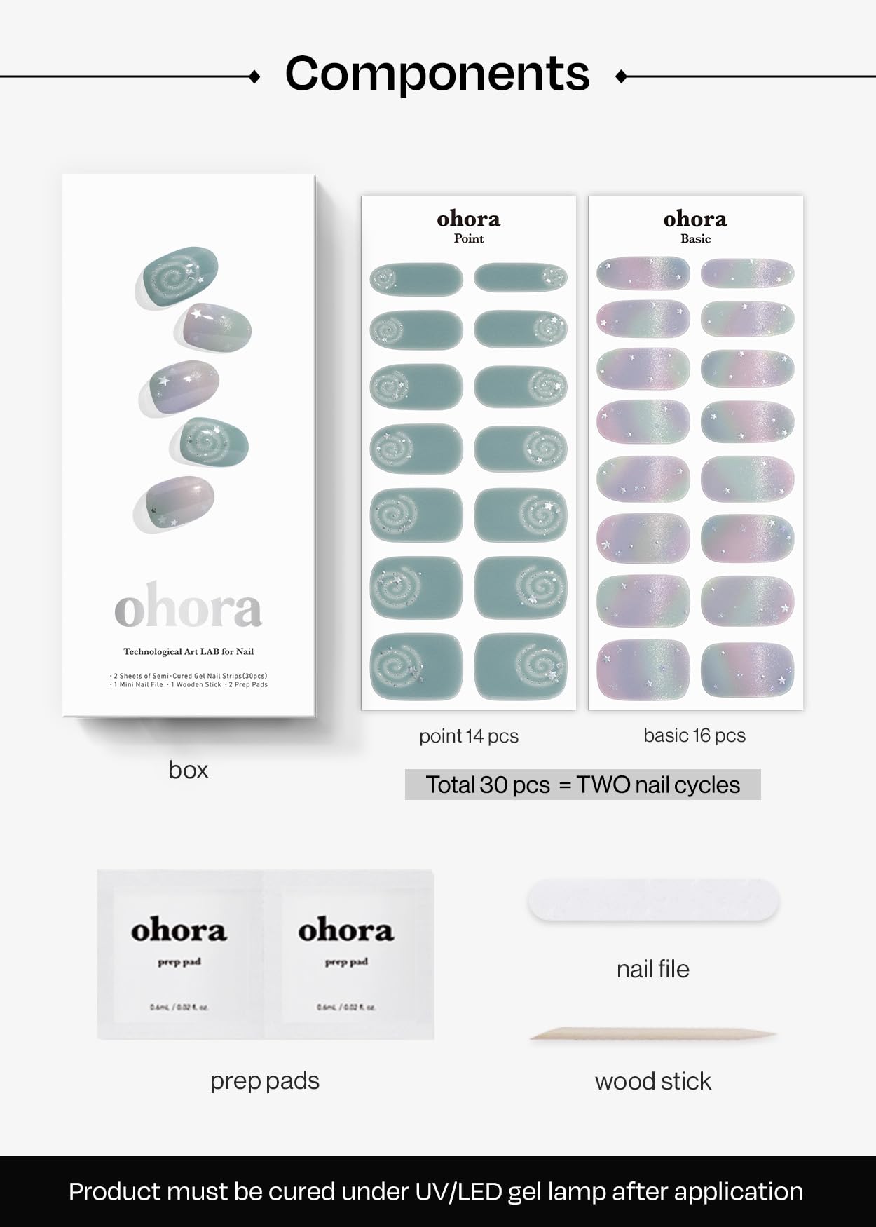 Pro Tip for Beautiful Nails That Last 2 Weeks - After applying, cure the nail strips using ohora Gel Lamp for 2-3 times for best results and to minimize risk of chipping and pop offs.