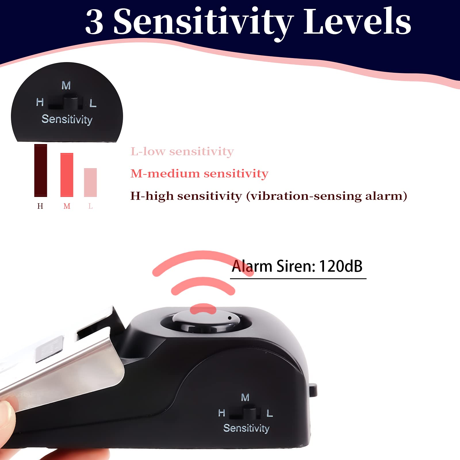 [3 Level of Sensitivities]: Hige-Midium- Low Sensitivities. Which depends on the distance door touch the door stop alarm.