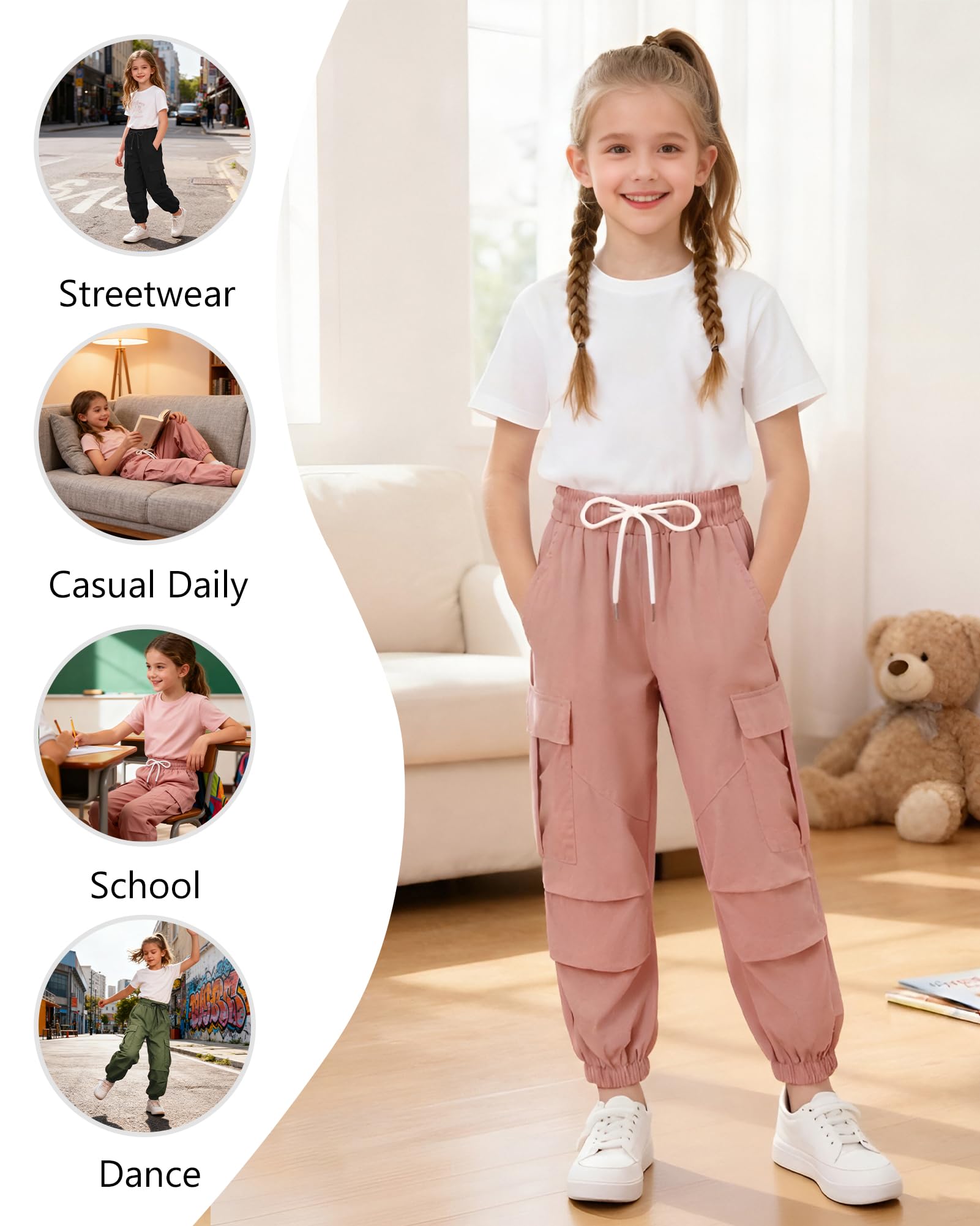 Functional & Stylish Design: Features adjustable drawstring waist + cargo pockets to hold treasures or gadgets, while knee pleats add a trendy twist. Choose from Black, Pink, Camo, Army Green, or Tie-Dye for her favorite look.
