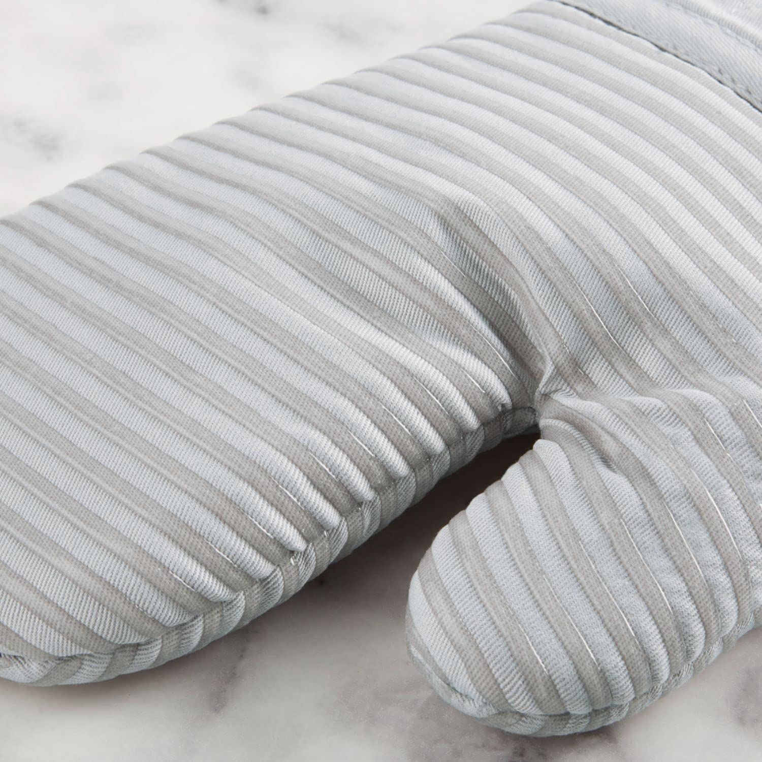 Set includes two absorbent, textured terrycloth kitchen towels, one dual-layered quilted pot holder, and one dual-layered oven mitt with a non-slip silicone grip and high heat resistance