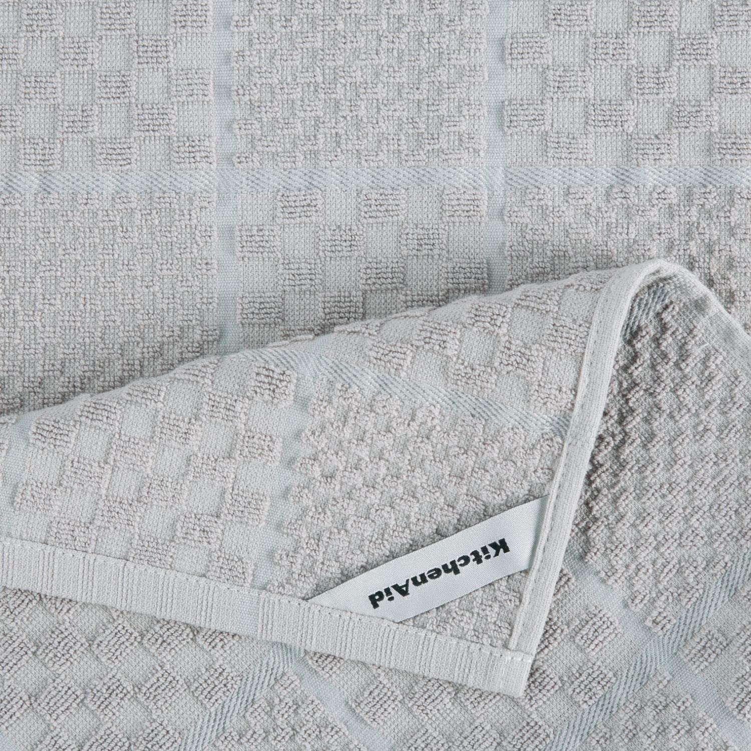 Easily refresh your kitchen essentials with the KitchenAid Quilted Cotton Terry Cloth 4-Pack Set. Including one double-lined oven mitt, one thick pot holder and two absorbent kitchen towels, this giftable 4-piece kitchen set will help take on any task in the kitchen. The oven mitt and pot holders are quilted with thick cotton and terry cloth lining for high heat resistance and ultimate comfort. A flexible non-slip silicone grip allows you to easily hold hot pots and pans while cooking. Each kitchen towel is textured with thick, absorbent terrycloth ideal for soaking up spills or drying dishes. Machine wash for easy care. Hang dry with decorate loops or lay flat to dry.