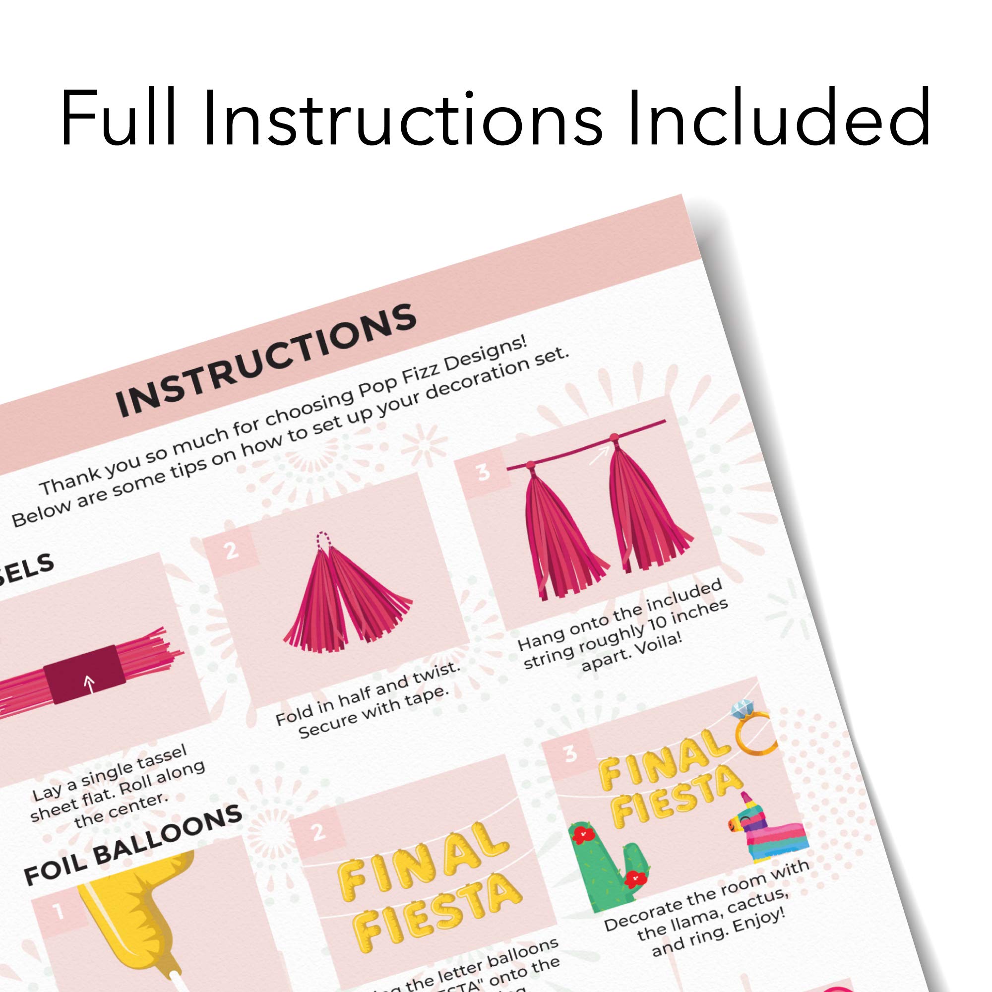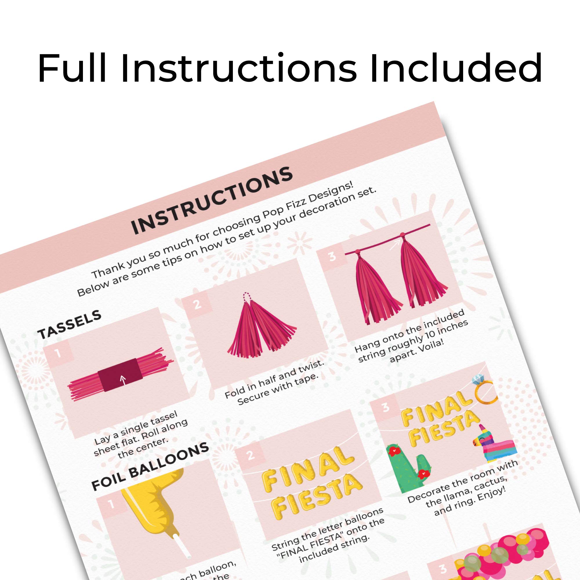 🎉 EASY TO ASSEMBLE- grab a balloon pump (electric highly recommended) and your Senoritas and let the set-up fun begin. Takes roughly one hour for complete setup. Some assembly required for balloon arch, letter foil balloons, and tassels.