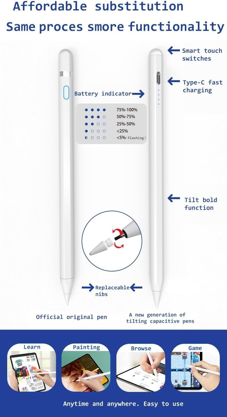 Precise and sensitive: Stylus Pen has premium 1.5 mm nib, sensitive touch technology provides better accuracy and compatibility without delays and disconnections, allowing you to create with maximum precision at all times. There is magnetic suction