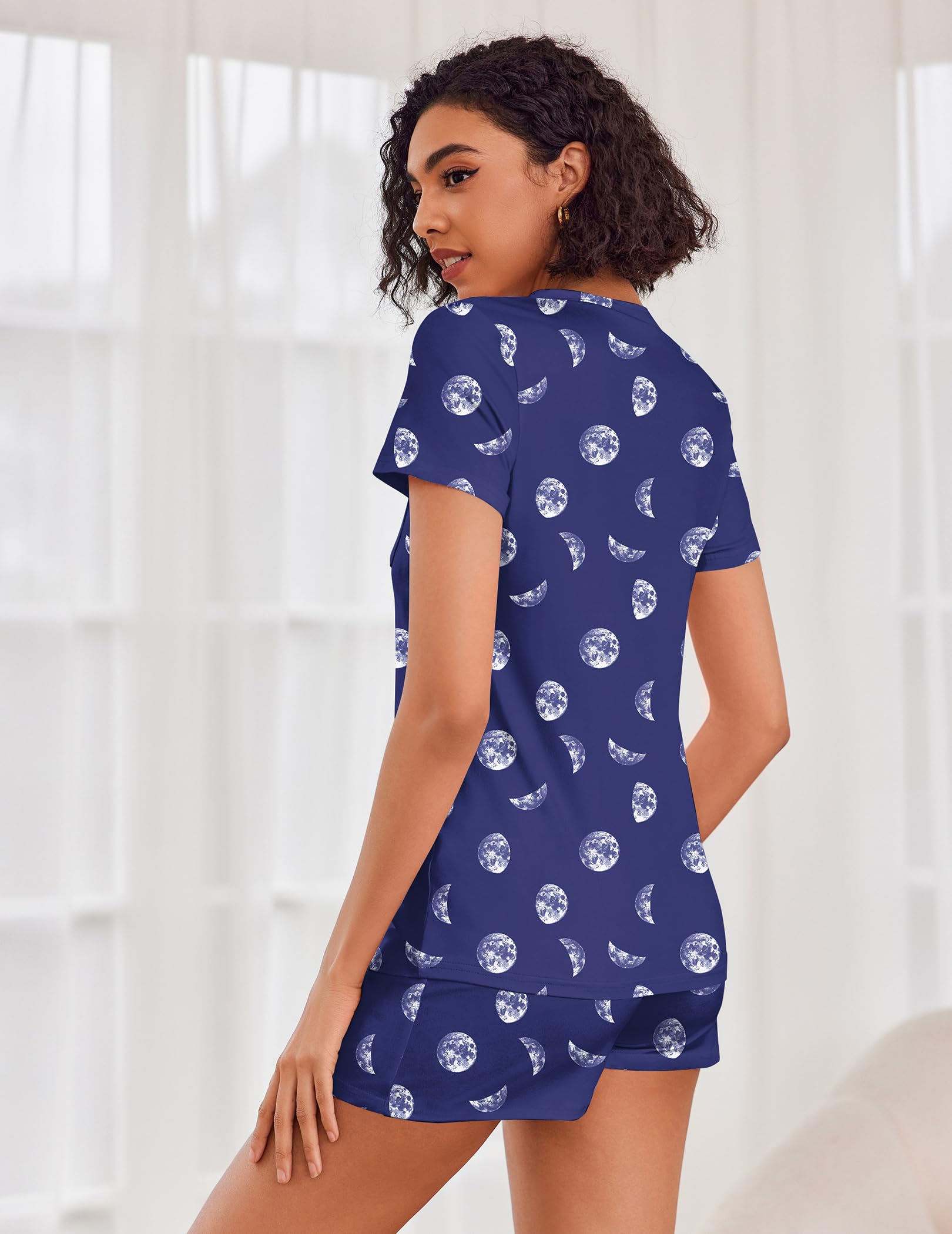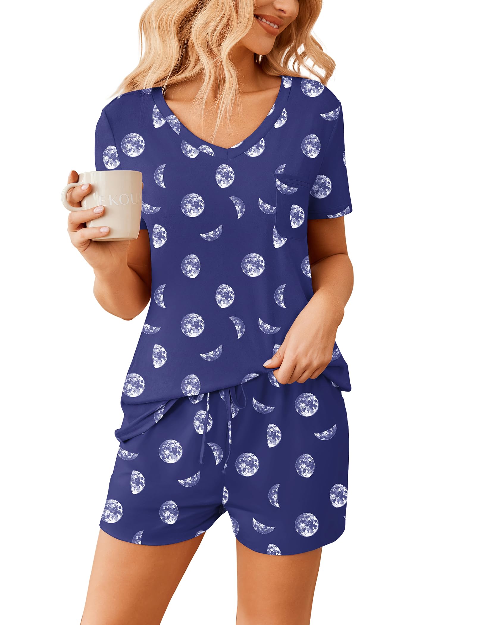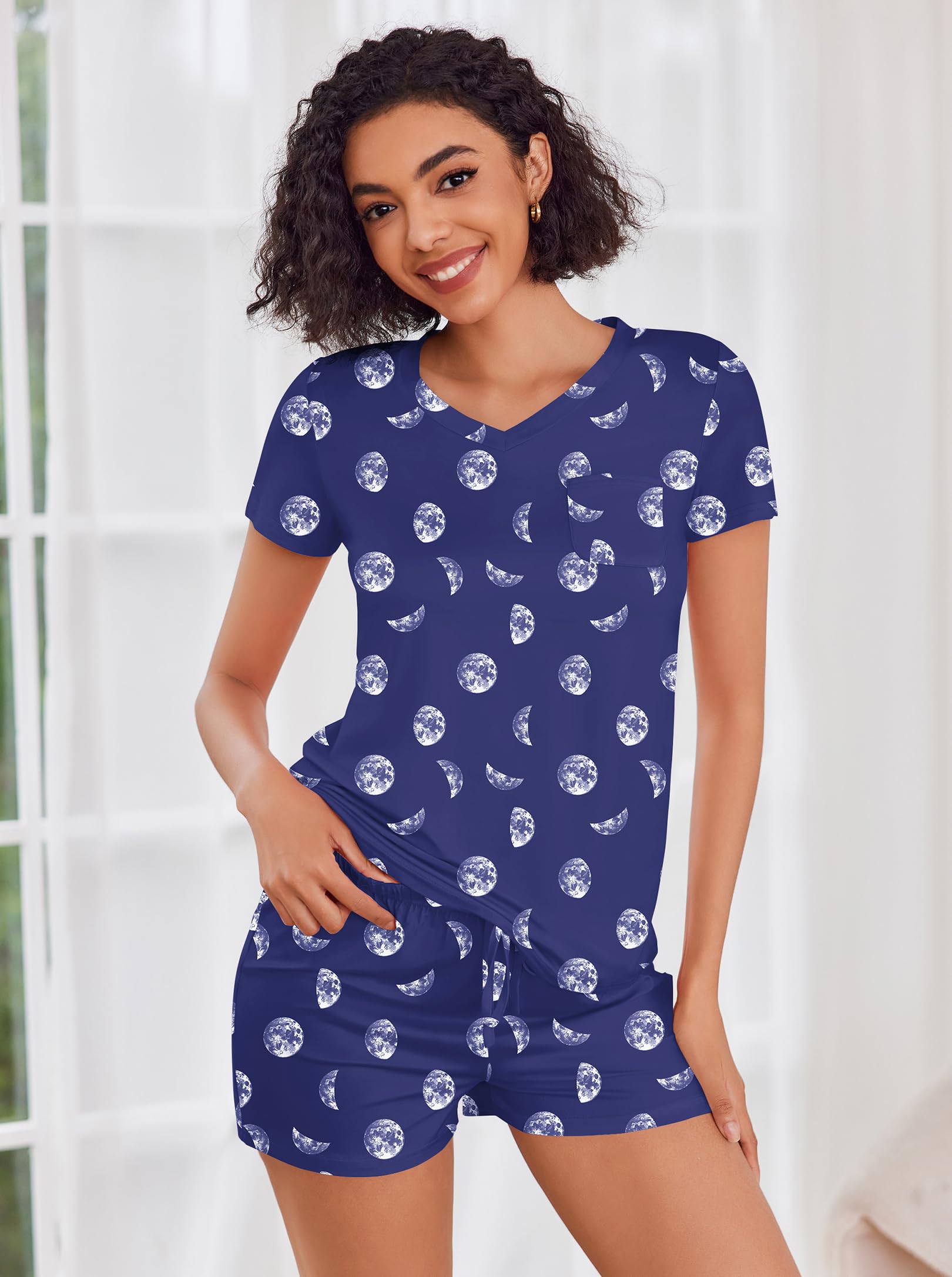 FEATURES: pajama sets for women 2 piece, pj sets for woman, V neck women's pajama sets, short sleeve T-shirt, drawstring elastic waist shorts.