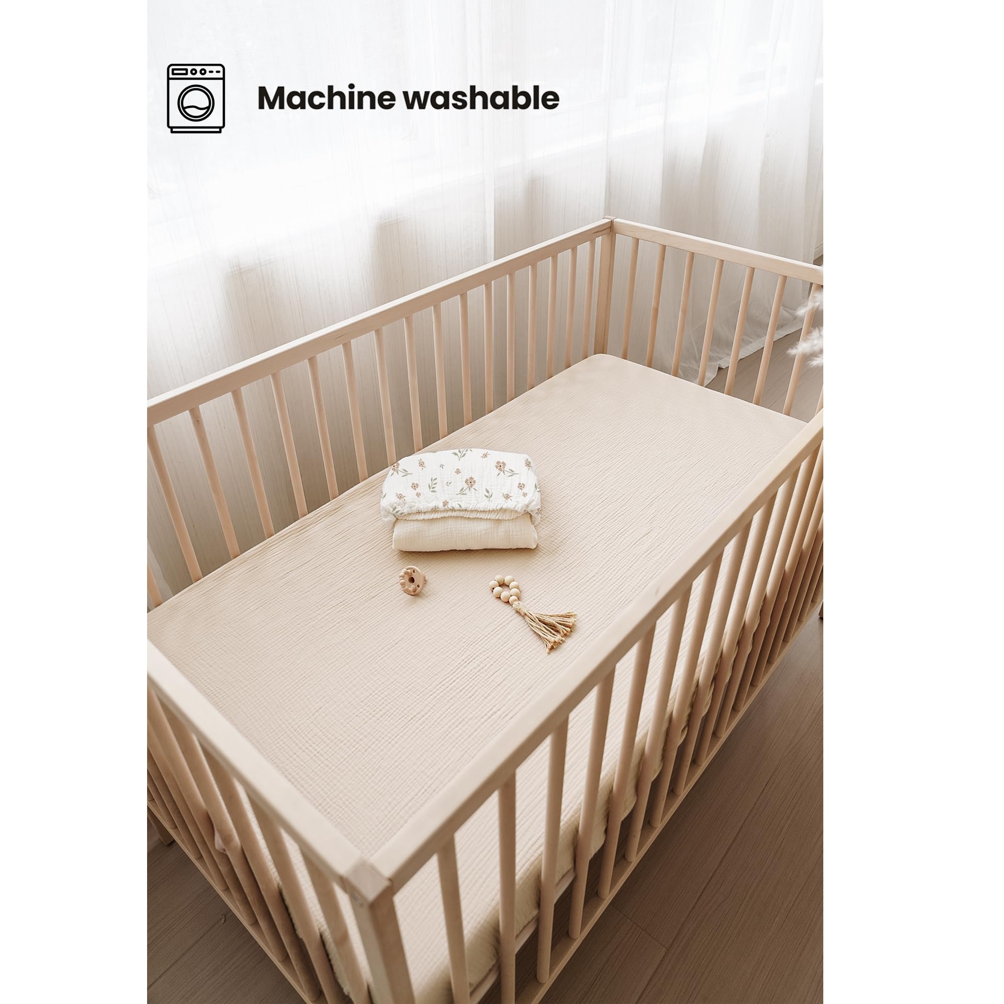 Super Soft and Breathable: These muslin crib sheets are made of 100% cotton (Muslin) for breathable with skin-friendly soft touch and retain its color after washed for several times. Keep your baby super comfortable and soft with this crib sheet