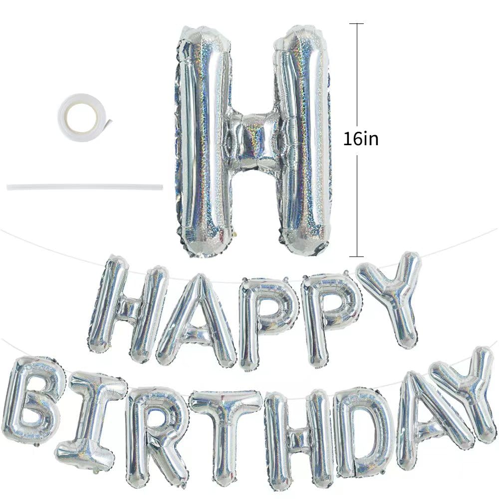 PACKACKAGE INCLUDES-- Totally 15 Pcs "Happy Birthday" letter balloons with 1pcs straw and 1 pcs ribbon. Each letter balloon measurement about 16 Inch.