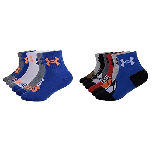 Moisture-wicking Under Armour socks keep kids' feet comfortable with padded footbeds and arch support.