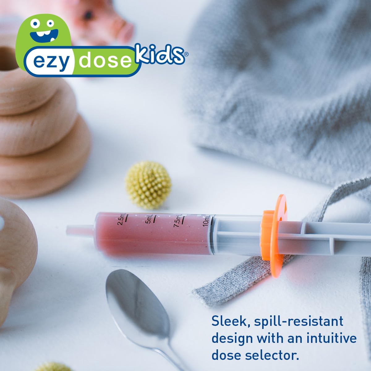Ezy Dose Kids True Easy dosing syringe helps you give accurate doses every time. The accuracy with color coded cap allows you to to turn the dial to the correct dose as follows: Blue = .5 Tsp / 2.5 mL Orange - 1 Tsp / 5 mL Green = 1.5 Tsp / 7.5 mL Purple = 2 Tsp / 10 mL Easy to hold and Dose. Quick and easy to clean.