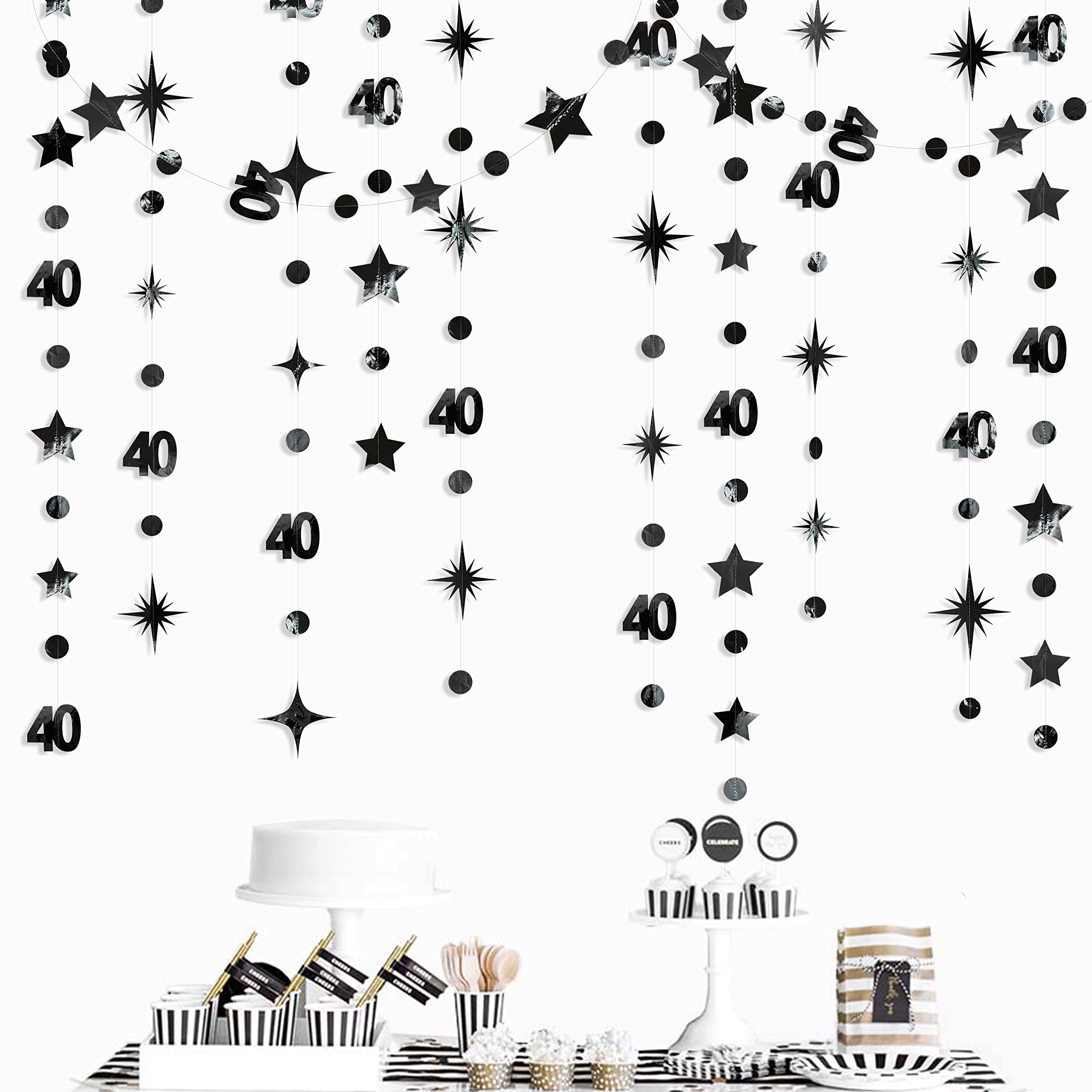Adorable party decor: The black number 40 circle dot twinkle star garland kit is perfct for mens/womens 40th birthday party, 40th birthday decorations, 40th birthday party supplies, beers and cheers to 40 years party, 40 and fabulous birthday decorations for women, im 40 bitchs party, 40th anniversary, wedding, bridal shower, birthday, engagement, barbecue, home, christenings, fetes, etc.