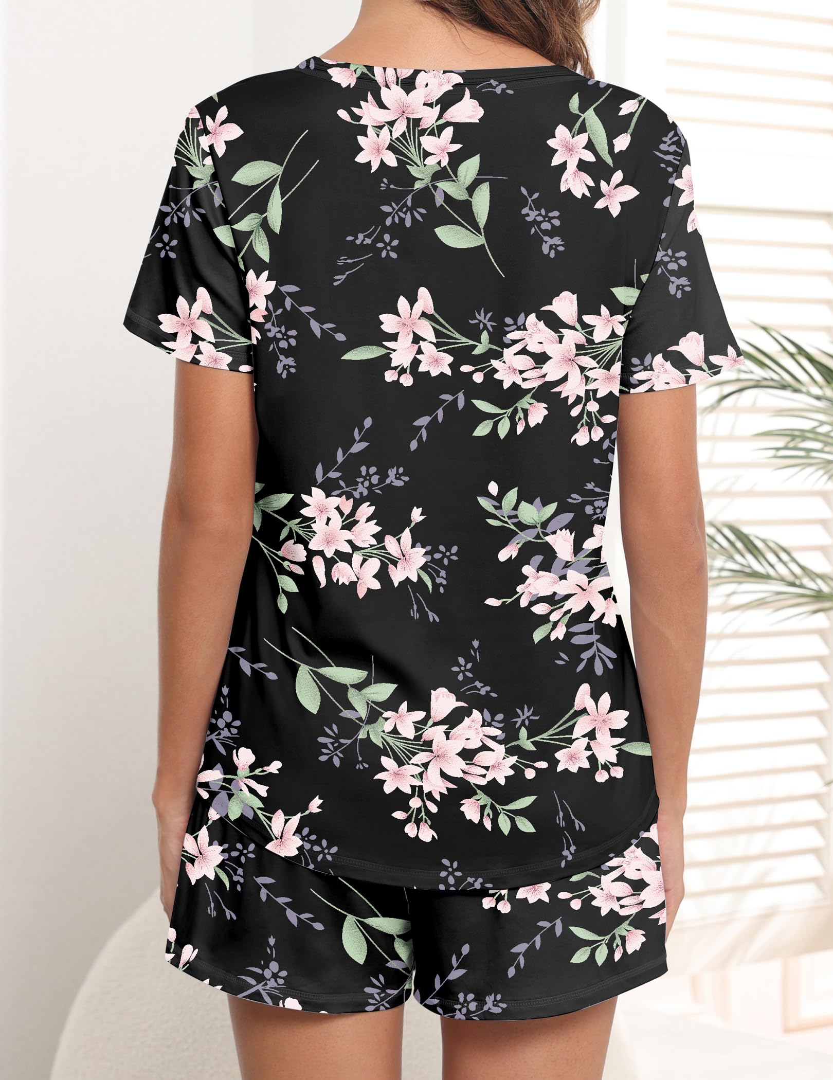 Material: 95% Polyester + 5% Spandex. Ekouaer womens short pajama sets are soft, lightweight, easy care, good elasticity, not easy to wrinkle, skin-friendly, breathable and comfortable