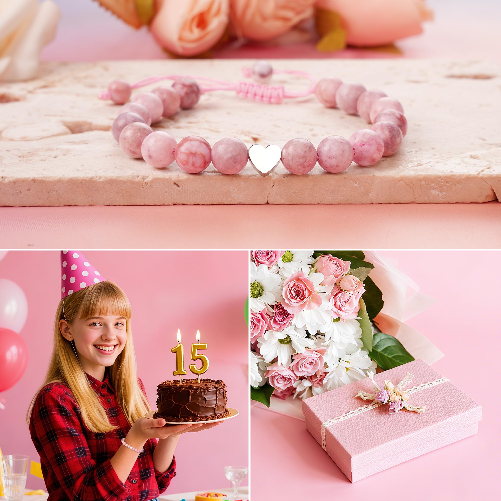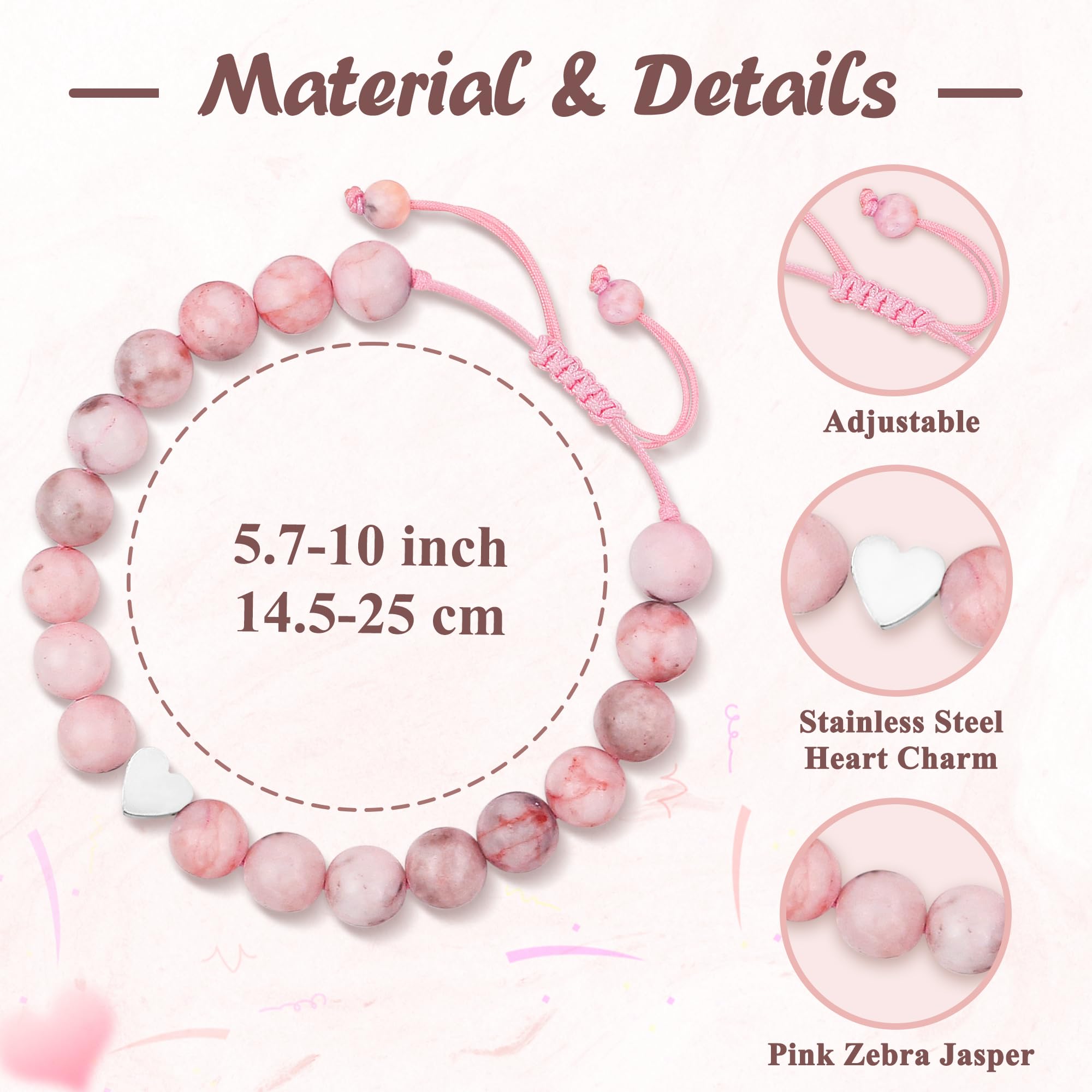 15th Birthday Gifts for Teen Girls: Expertly crafted for lasting beauty, this girls' beaded bracelet features a genuine 8.6mm natural pink zebra stone and a gleaming, mirror-polished stainless steel heart charm. The materials are selected for their durability and hypoallergenic properties, ensuring a comfortable and safe wear for everyday elegance and special occasions alike