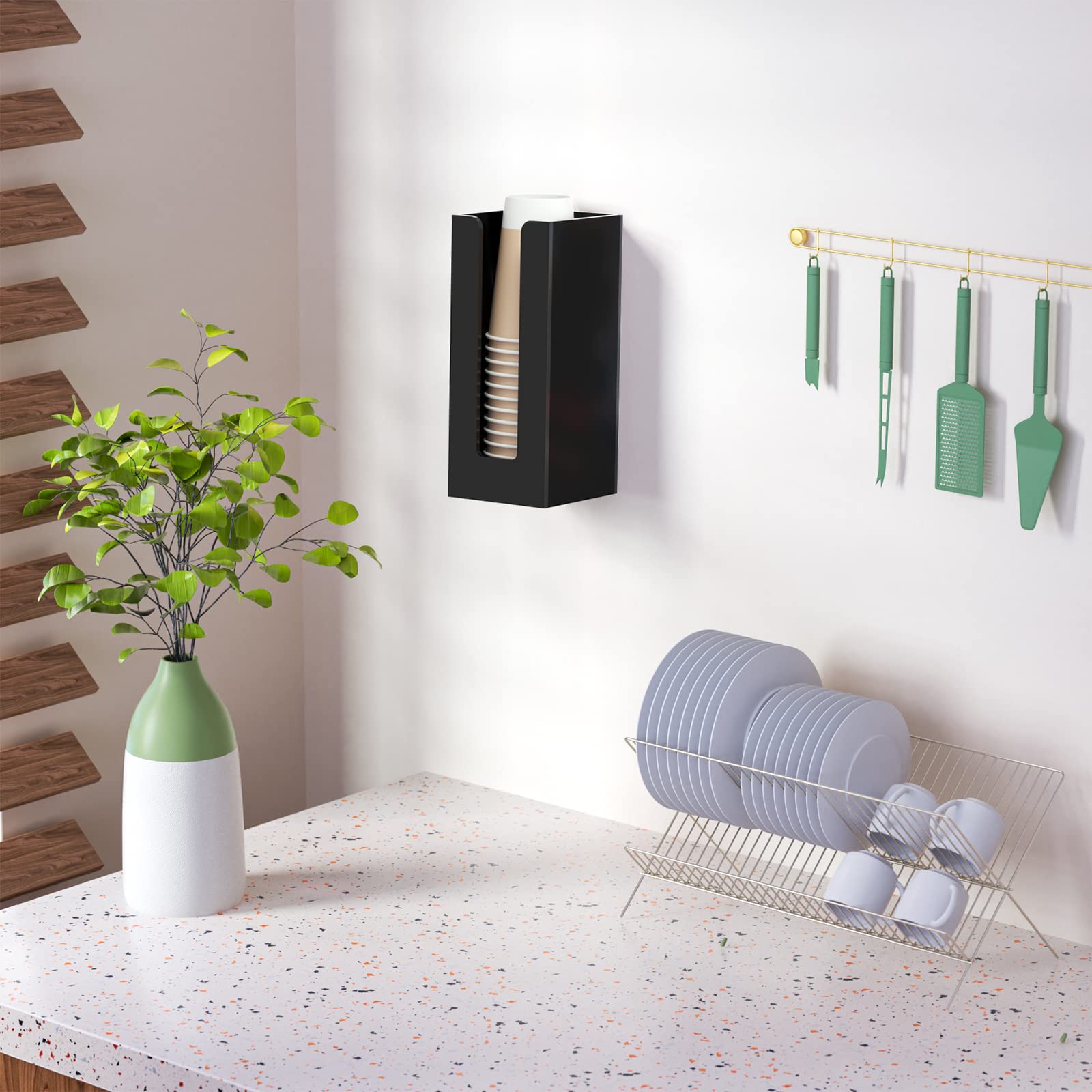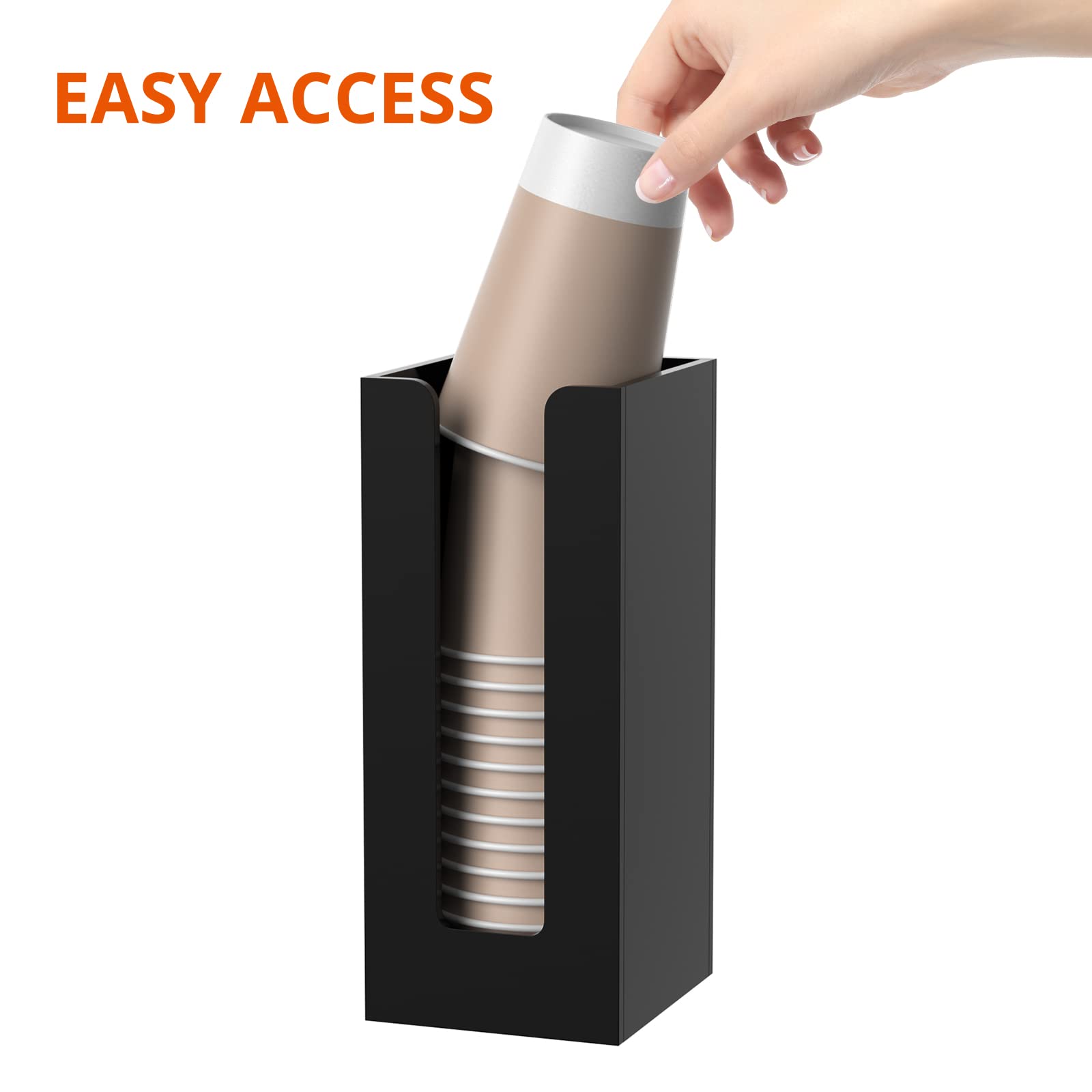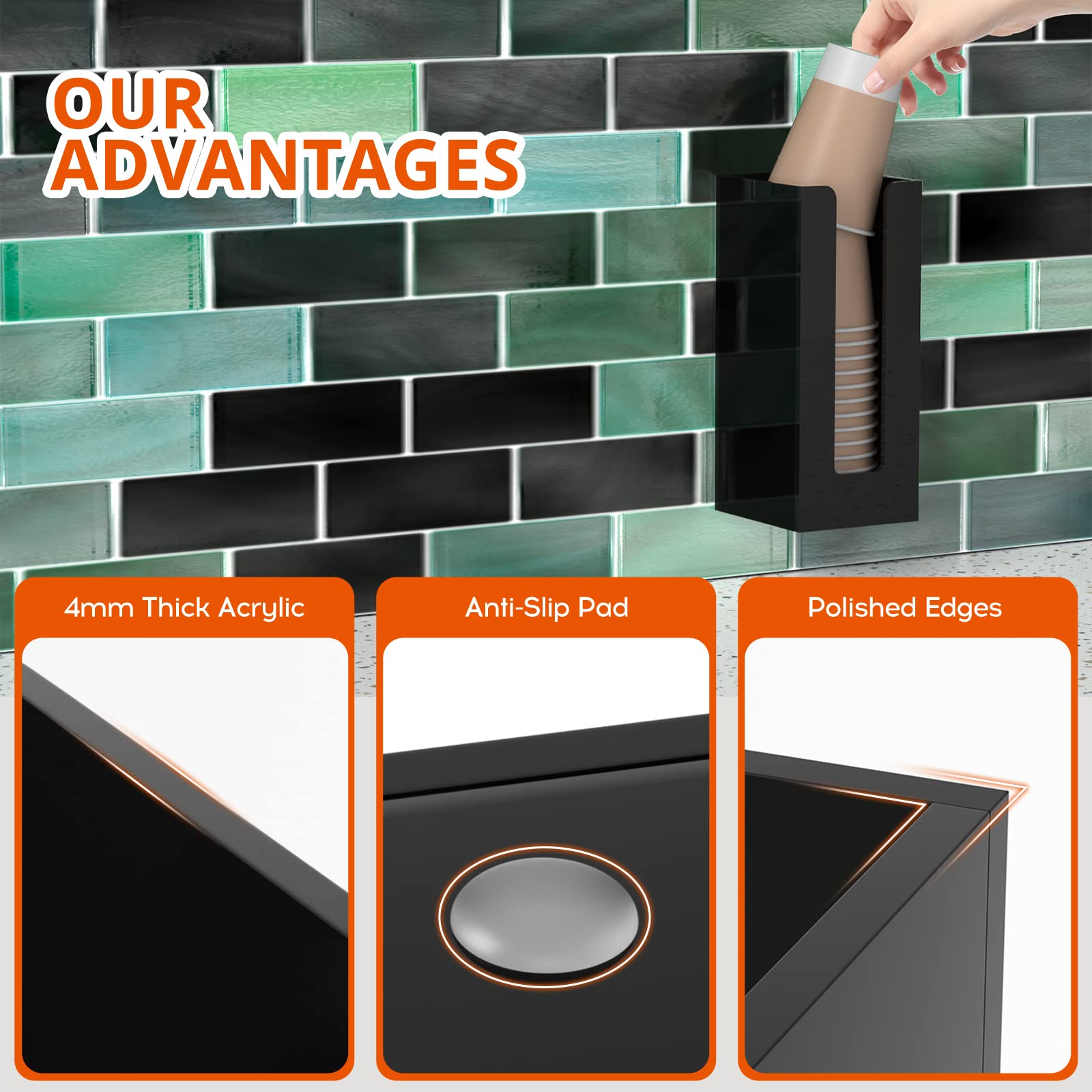 Functional - comes with 2 pre-drilled holes on the back of the acrylic cup dispenser storage organizer, it can be either mounted on wall or placed on countertops of your bathroom, kitchen, office, coffee station.