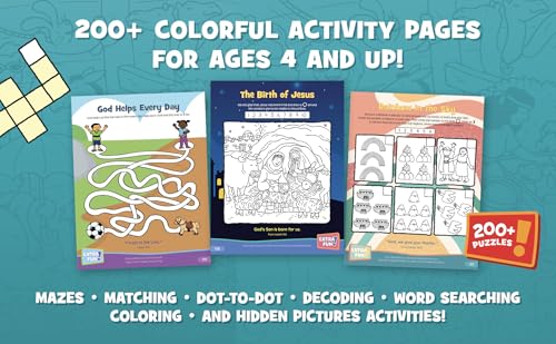 Perfect for quiet-time, travel-time, or anytime, this jam-packed activity book offers colorful, faith-filled fun for kids ages 4 and up! Hundreds of pages of bright patterns and full-color illustrations give children opportunities to learn about the Bible while having fun. Big Book of Amazing Bible Activities offers exciting play-and-learn fun for children ages 4 and up, with more than 200 mazes, matching, counting, decoding, word searching, coloring, and finding activities—all based on God’s Word. This jumbo activity book: includes Bible story references, a Scripture index, answer pages, and Bible memory verses offers children entertaining, screen-free experiences for home, school, or travel uses the power of play to create Bible-learning moments reinforces biblical truths in memorable ways provides hours of independent play An awesome mix of games and puzzles help children hone fine motor skills, develop creativity, and learn problem-solving techniques. Each activity is based on a biblical story or principle, making this an excellent resource for homeschool and children’s ministry as well as family fun.