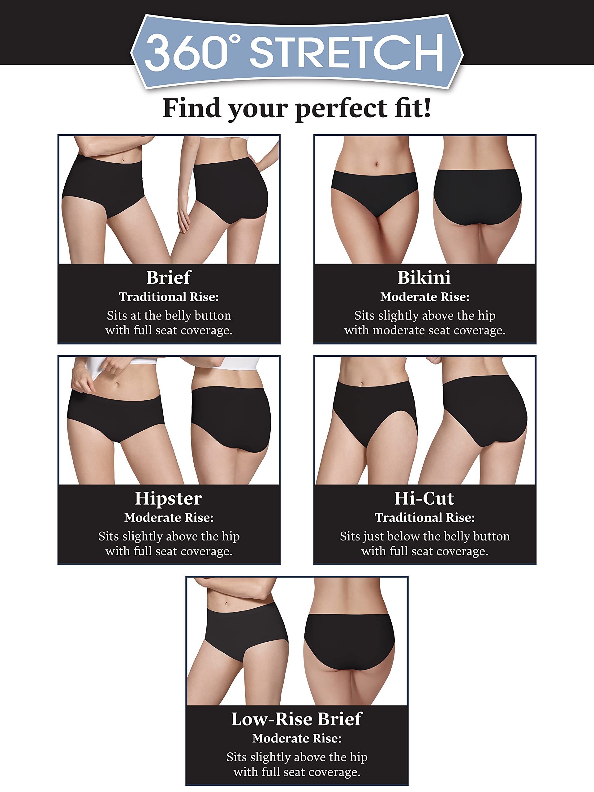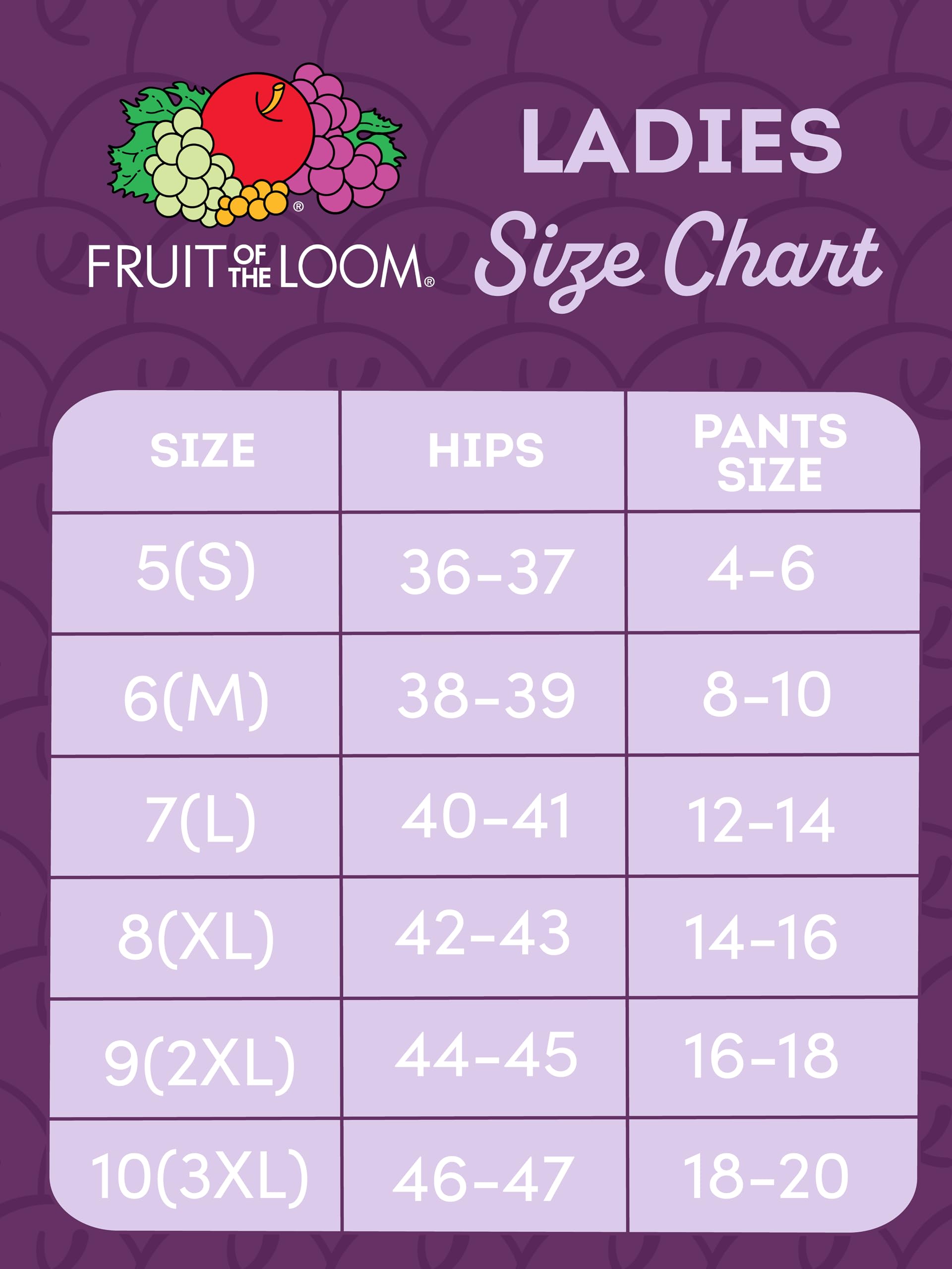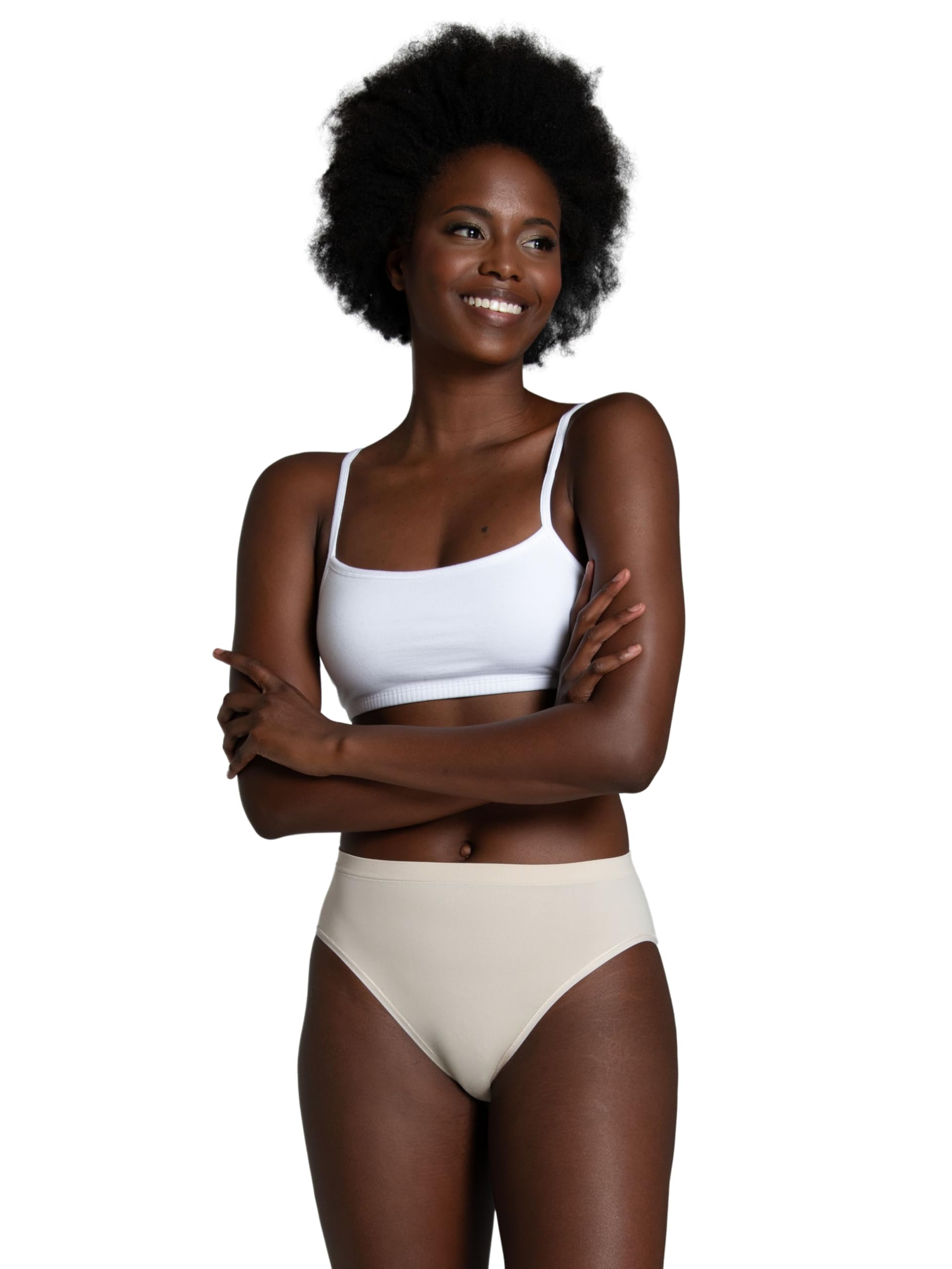 Description Color and Style May Vary (Assorted). Pesky panty lines and irritating side seams are a thing of the past with Fruit of the Loom’s Seamless hi-cuts! Made with 100% premium nylon, these panties have an amazing stretch that moves with you and fits perfectly to your shape. Flat ribbon elastic lays flat against your skin to eliminate panty lines and irritation from side seams. The waistband is smooth and comfortable, and as always, Fruit of the Loom panties are tag free for extra softness. The hi-cut silhouette sits above the hips and has leg openings cut higher towards the hips. These wardrobe essentials are perfect for everyday wear or special occassions and are sure to become your new go-to! Stock up on these must-haves with our convenient 6 pack!