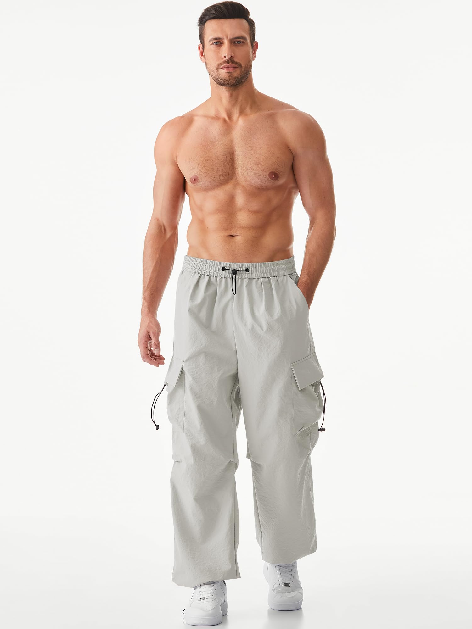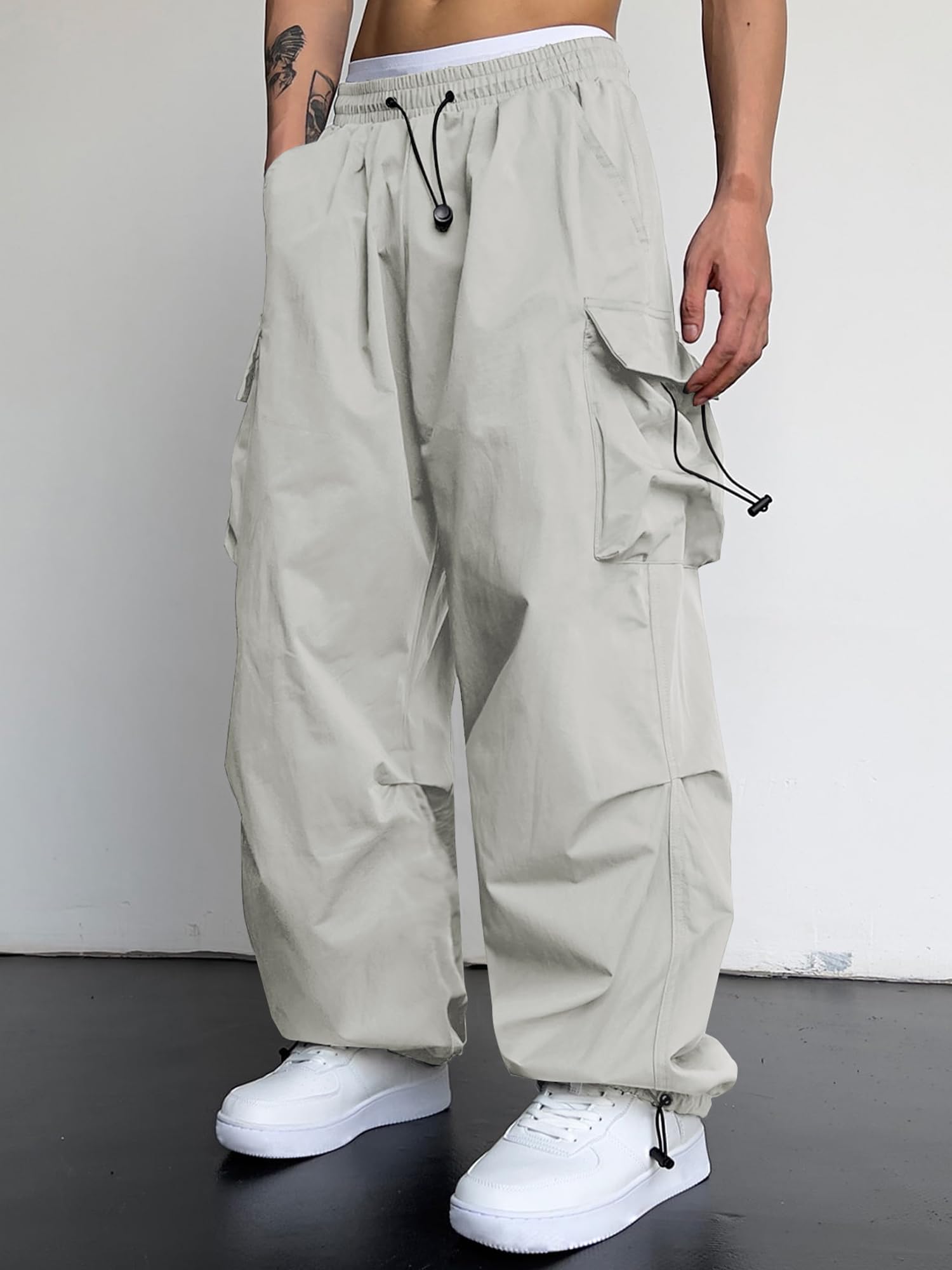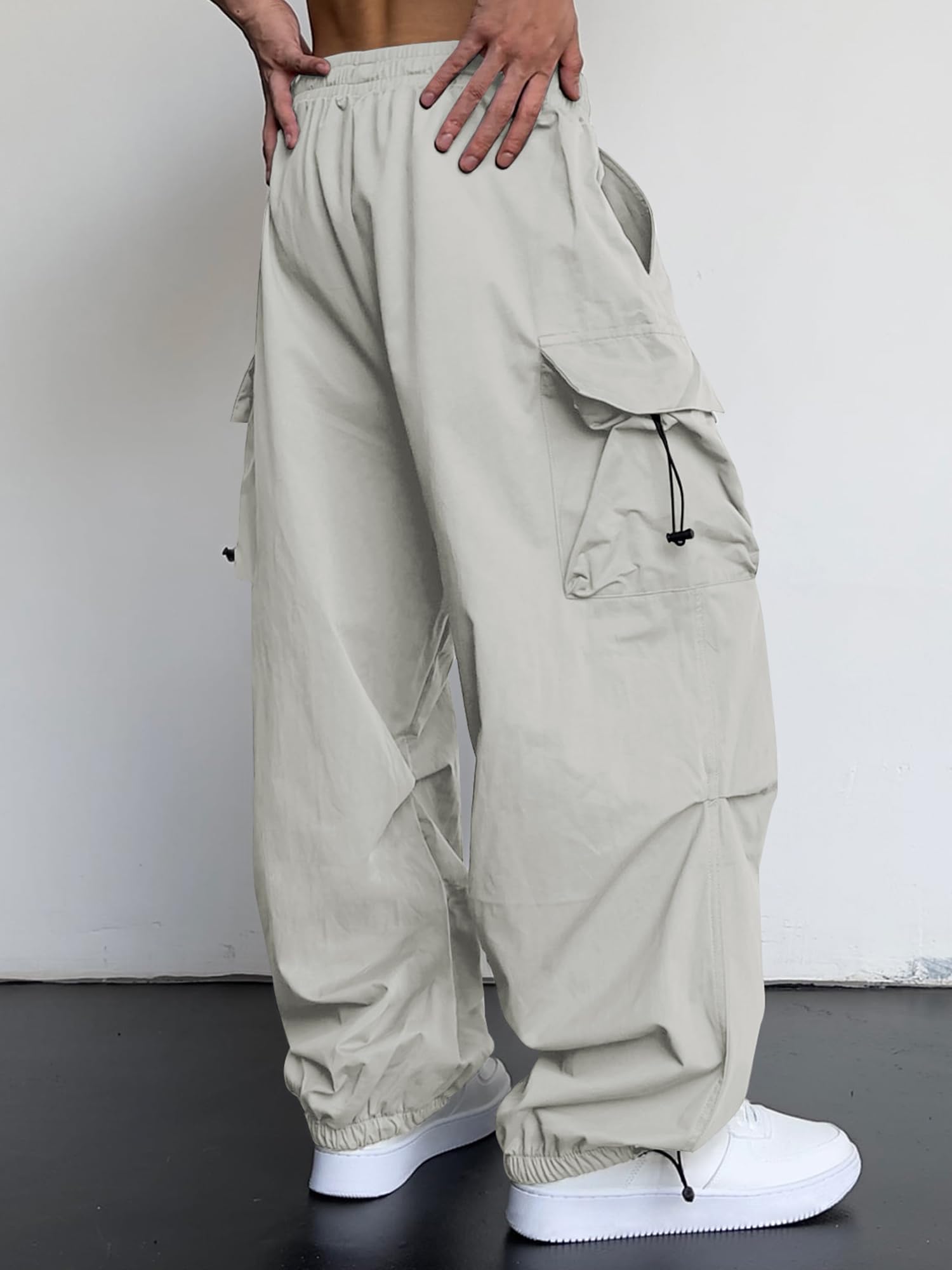 Trendy Design: JMIERR's men's cargo pants blend parachute pants design with a wide flare leg, reminiscent of 90s hippie grunge style. Featuring a unique and bold look, these pants include an elastic waistband, adjustable drawstrings, and 4 pockets, making them a super chic addition to any stylish men's wardrobe.