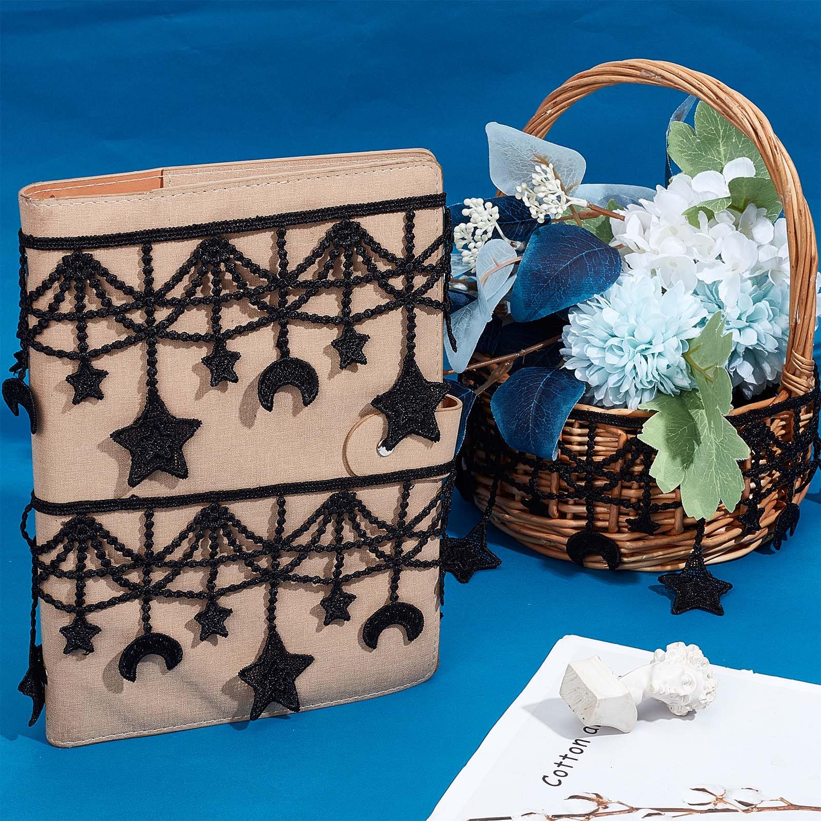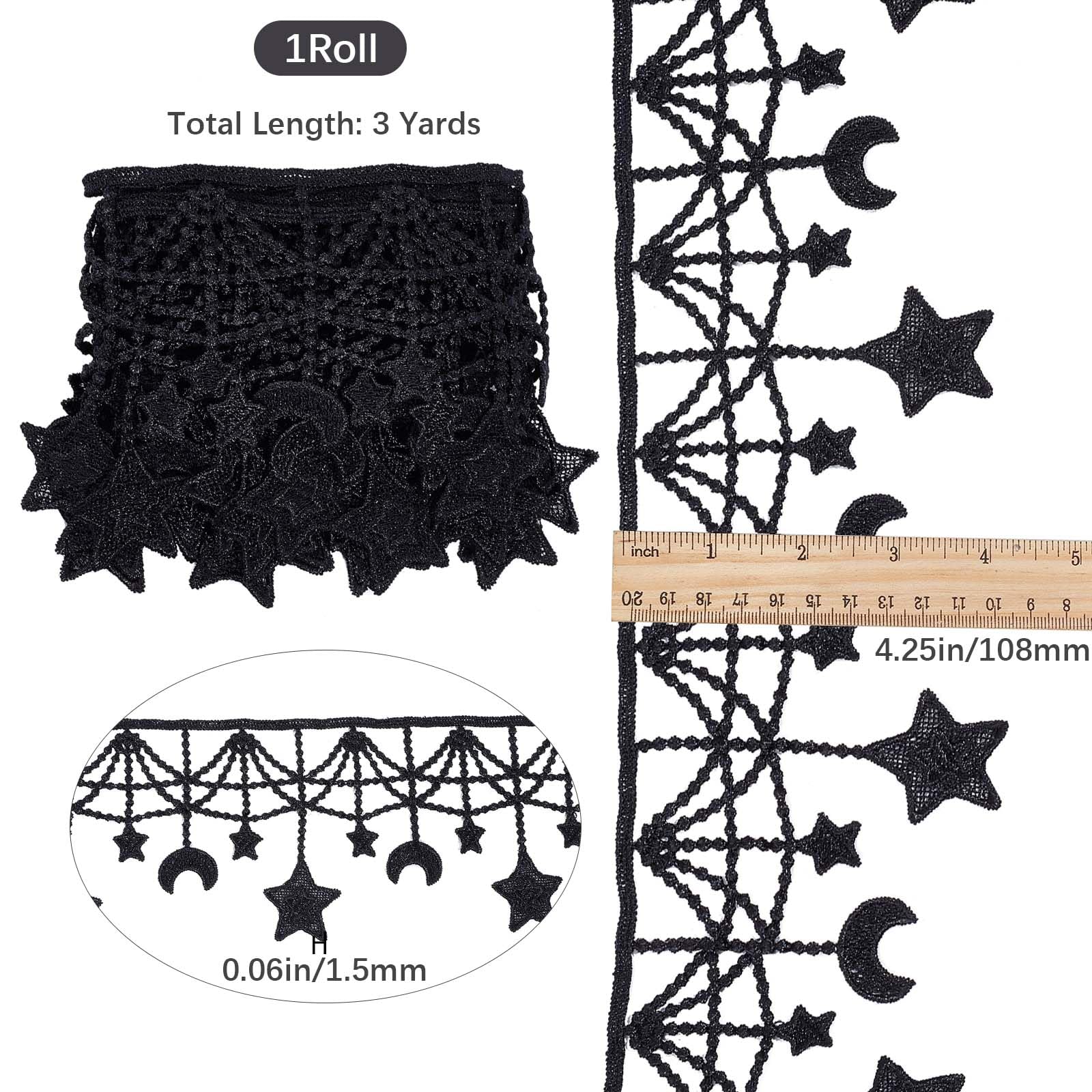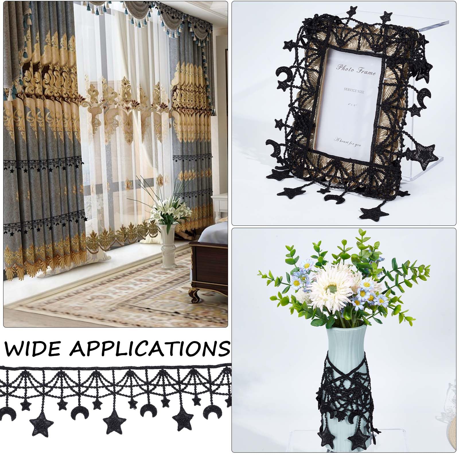 3 Yards Moonstar Lace Trim: Includes 3 yards black polyester lace trim with hanging moonstars. Large quantity and enough length for you to use and replace in daily life