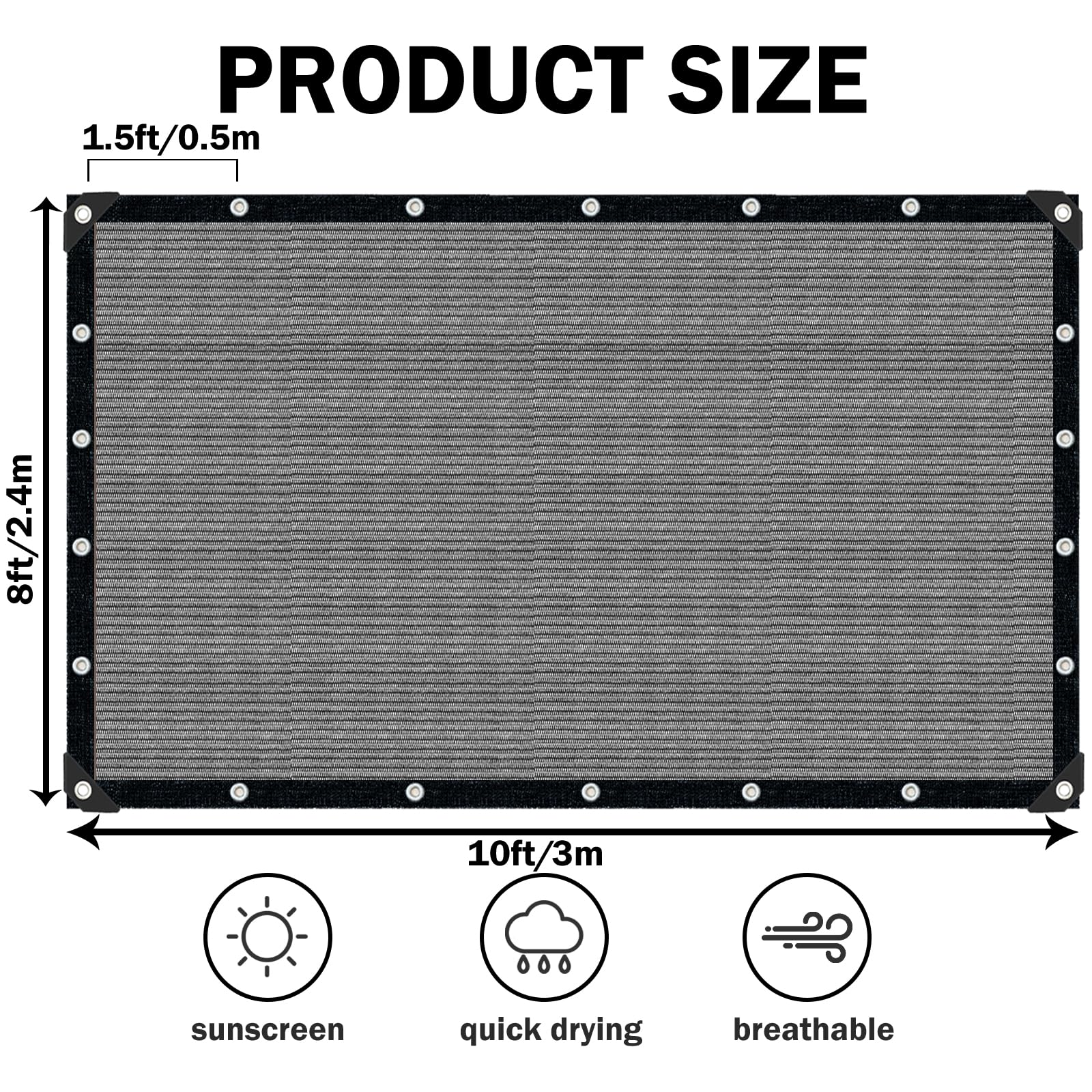 Premium Material: The shade fabric is made of high-density polyethylene (HDPE). It is a high-quality knitted fabric with excellent tear and abrasion resistance. At the same time, sun screens for patio allows the circulation of air and light, ensuring good ventilation and temperature control; its design allows rainwater to pass through and prevents water accumulation.