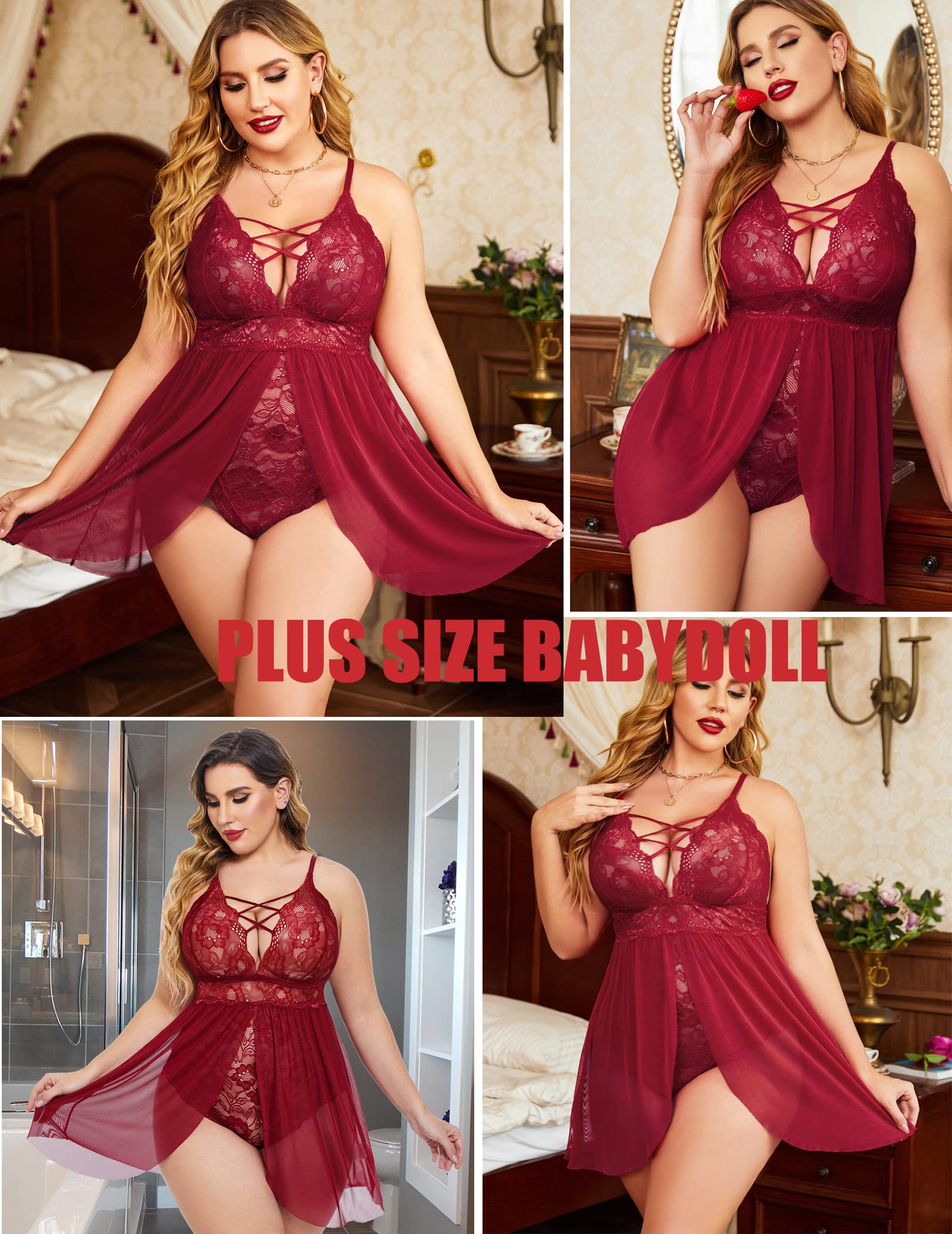 Details: Sexy babydoll lingerie with full lace cups and criss-cross detailing, adjustable spaghetti straps, lace underbust band, and mesh skirt with vented front, all this features allows this chemise easy to fit and comfortable to wear