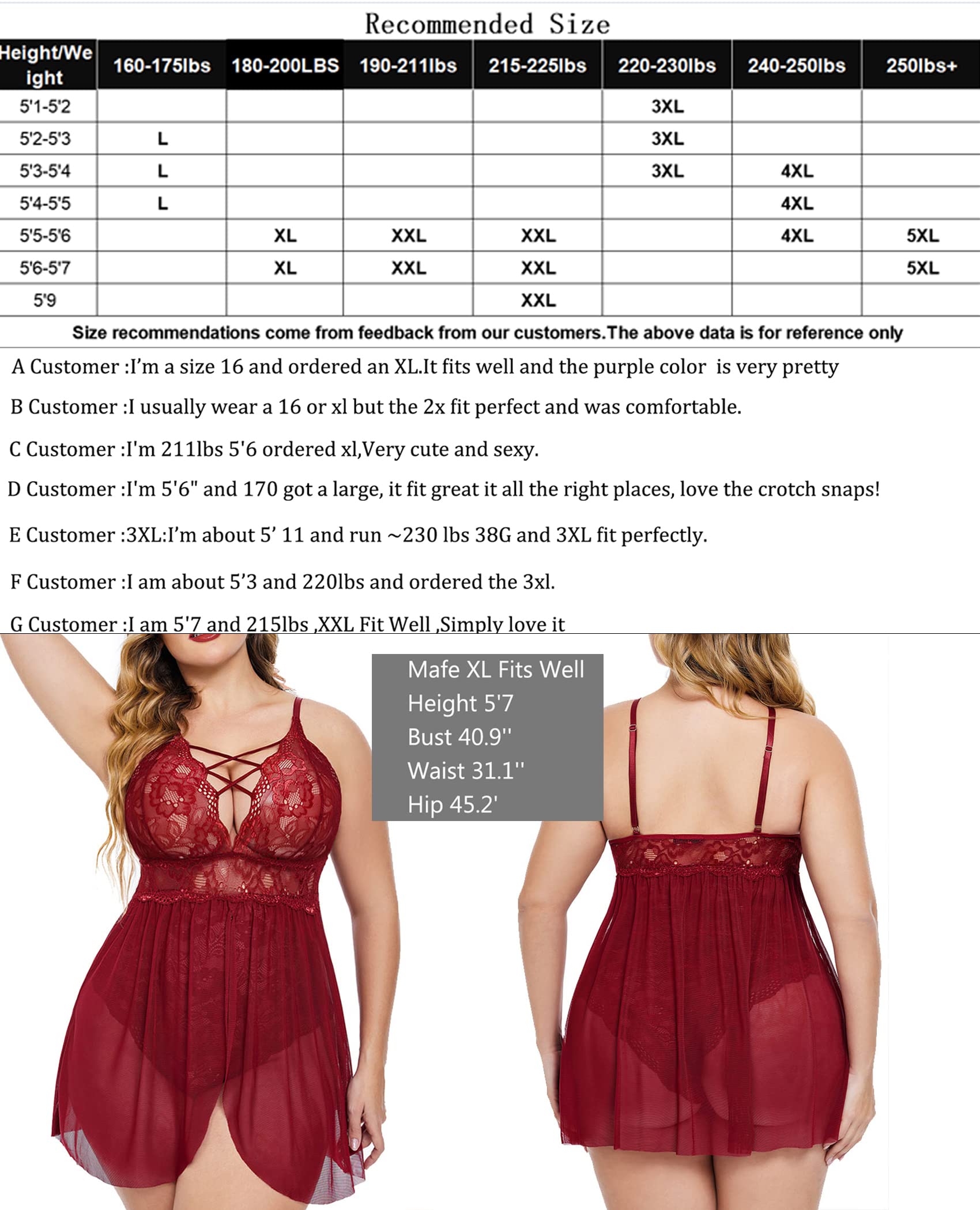 Material: Womens Lingeries made of 95% polyester and 5% spandex, this soft lace and mesh is stretch and breathable with unique pattern adorned. This chemise perfectly shows your body line, flattering and sure to draw your lover's attention