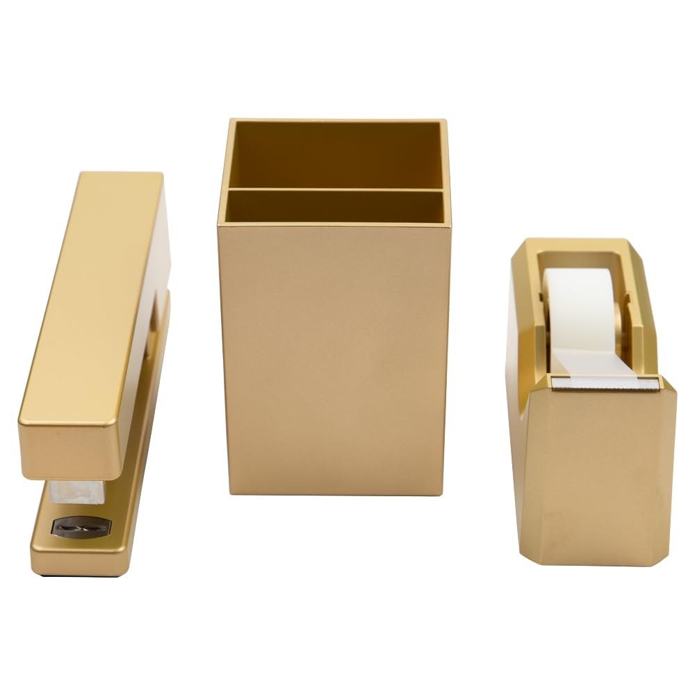Quantity: (1) Stapler, (1) Tape Dispenser (tape not included), (1) Pen Holder