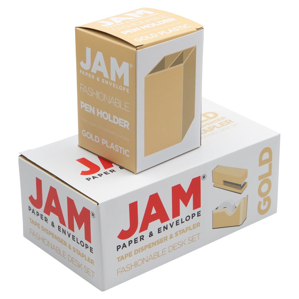 Stapler Size: 6 x 2.5 x 1.125 inches | Tape Dispenser Size: 4.5 x 2.5 x 1.75 inches | Pen Holder Size: 2.75 x 2.75 x 3.875 inches
