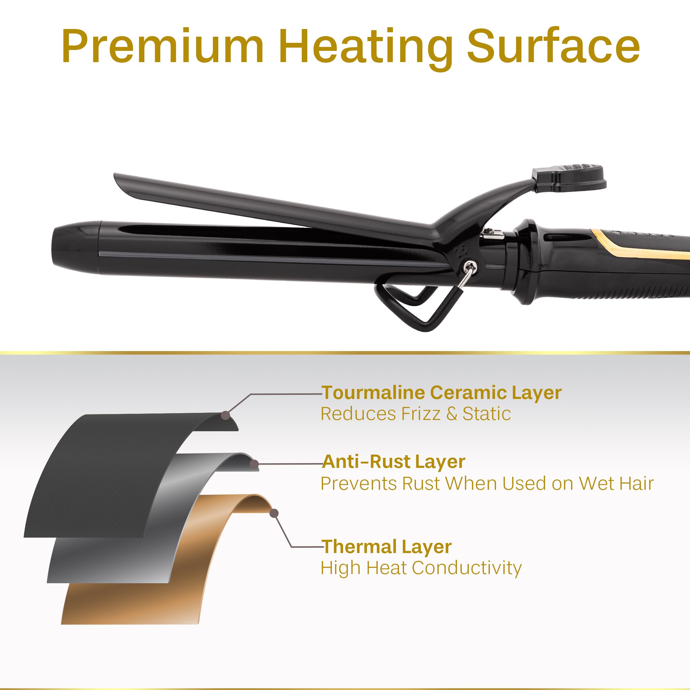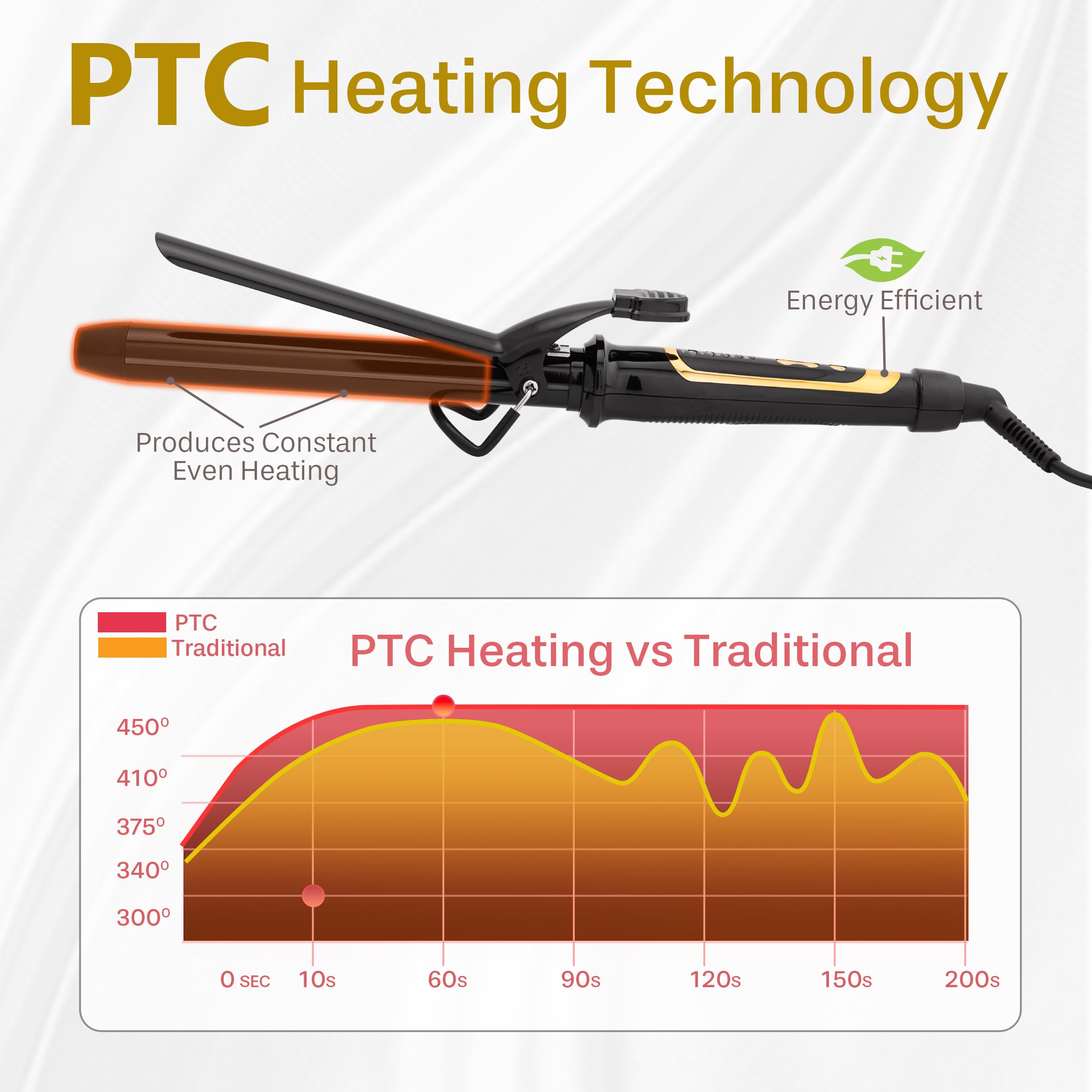 GRIP HOLD TECHNOLOGY: Unlike other curling irons with uncomfortable handles and no clips, our wand features an innovative tight clamp mechanism for secure styling. Effortlessly create curls from root to tip without worrying about slippage or finger safety, and enjoy a perfectly styled look with ease.
