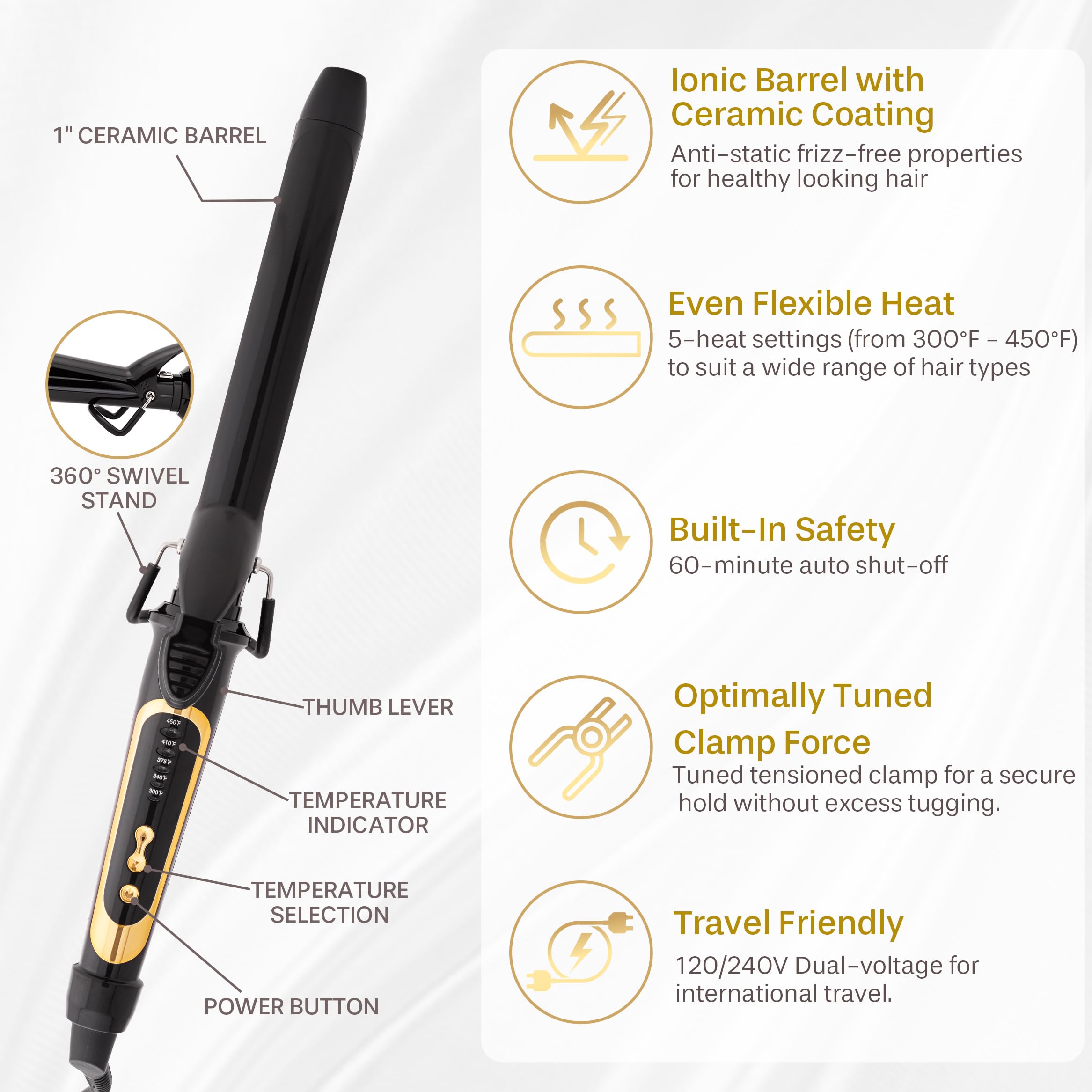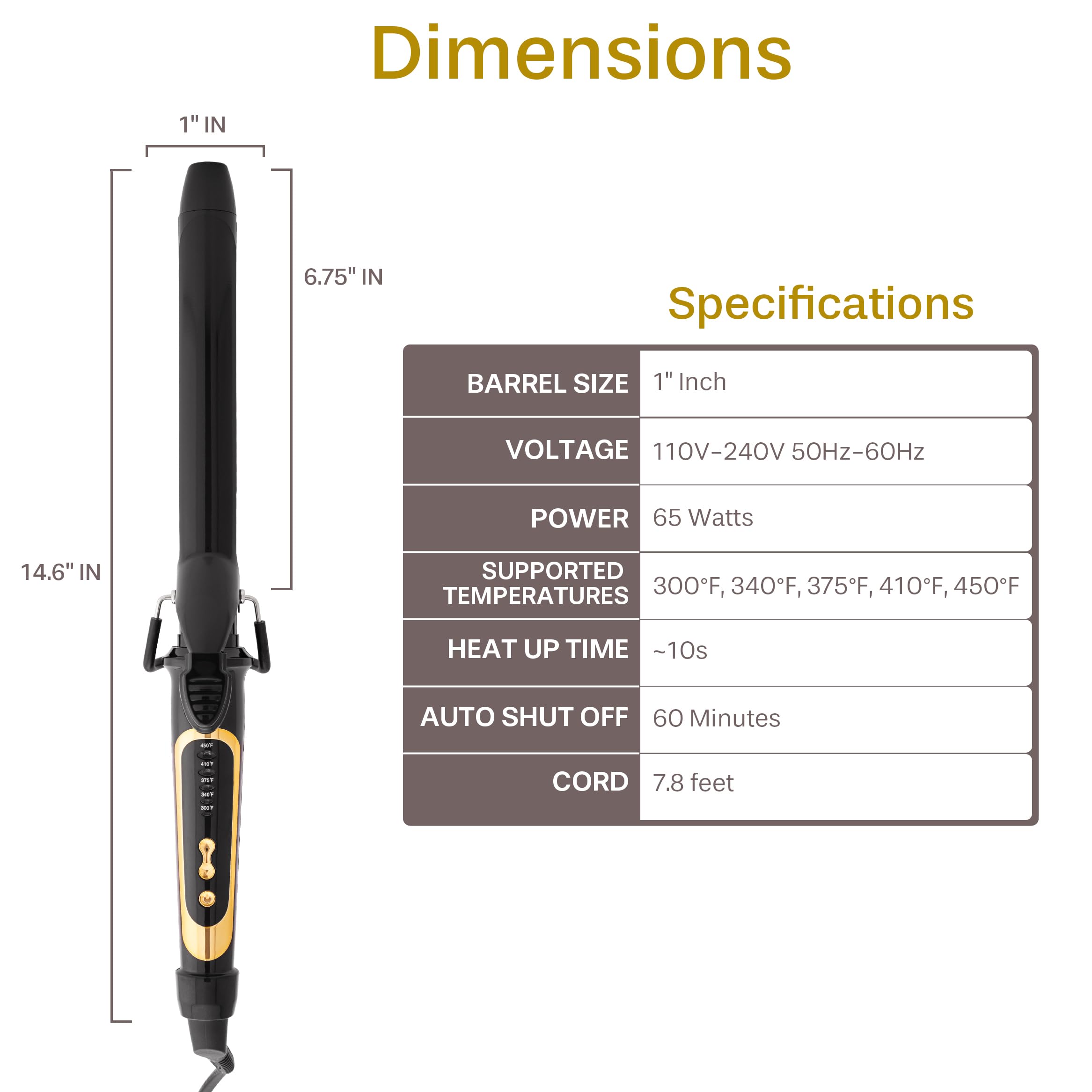 FLEXIBLE STYLE CHOICES: This sleek ceramic beachwaver curling iron features a long barrel, in a 1inch diameter, engineered to allow you to effortlessly create a variety of looks. From silky defined curls to carefree, beachy waves. Express your unique style with confidence and ease.
