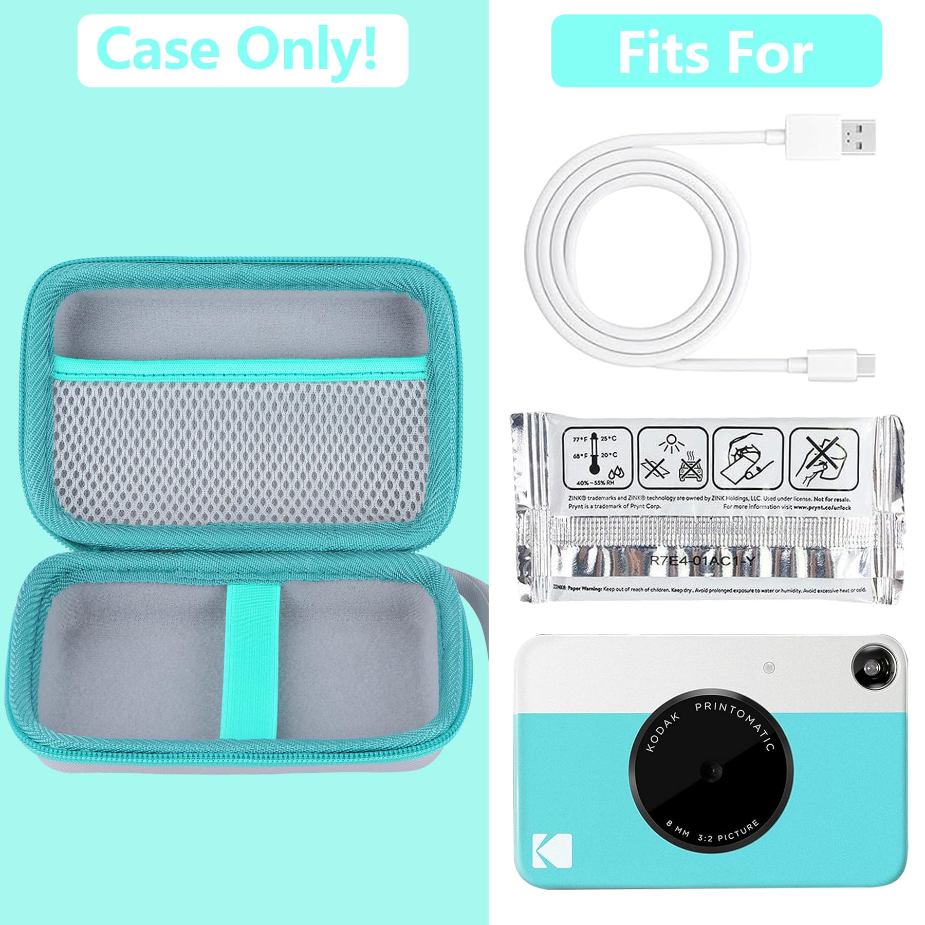 Compatibility: This RIYADAone storage case is made for KODAK Printomatic Full Color instant print digital camera. This KODAK Printomatic instant print digital camera case offers secure protection for your KODAK Printomatic instant print camera. This case for Printomatic instant print camera keep your Printomatic camera in a good condition